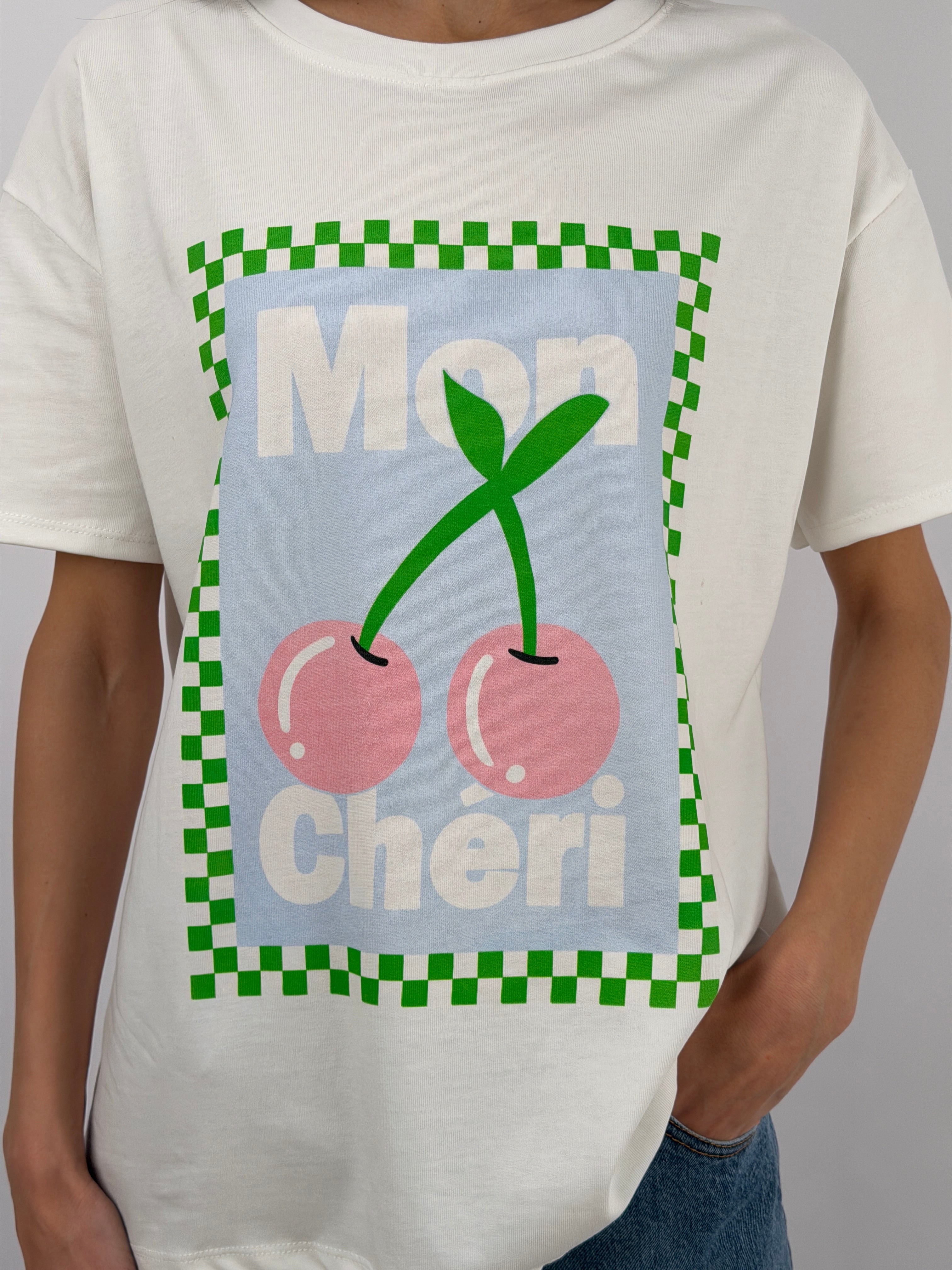 Maglia oversize a maniche corte girocollo in cotone con stampa frontale