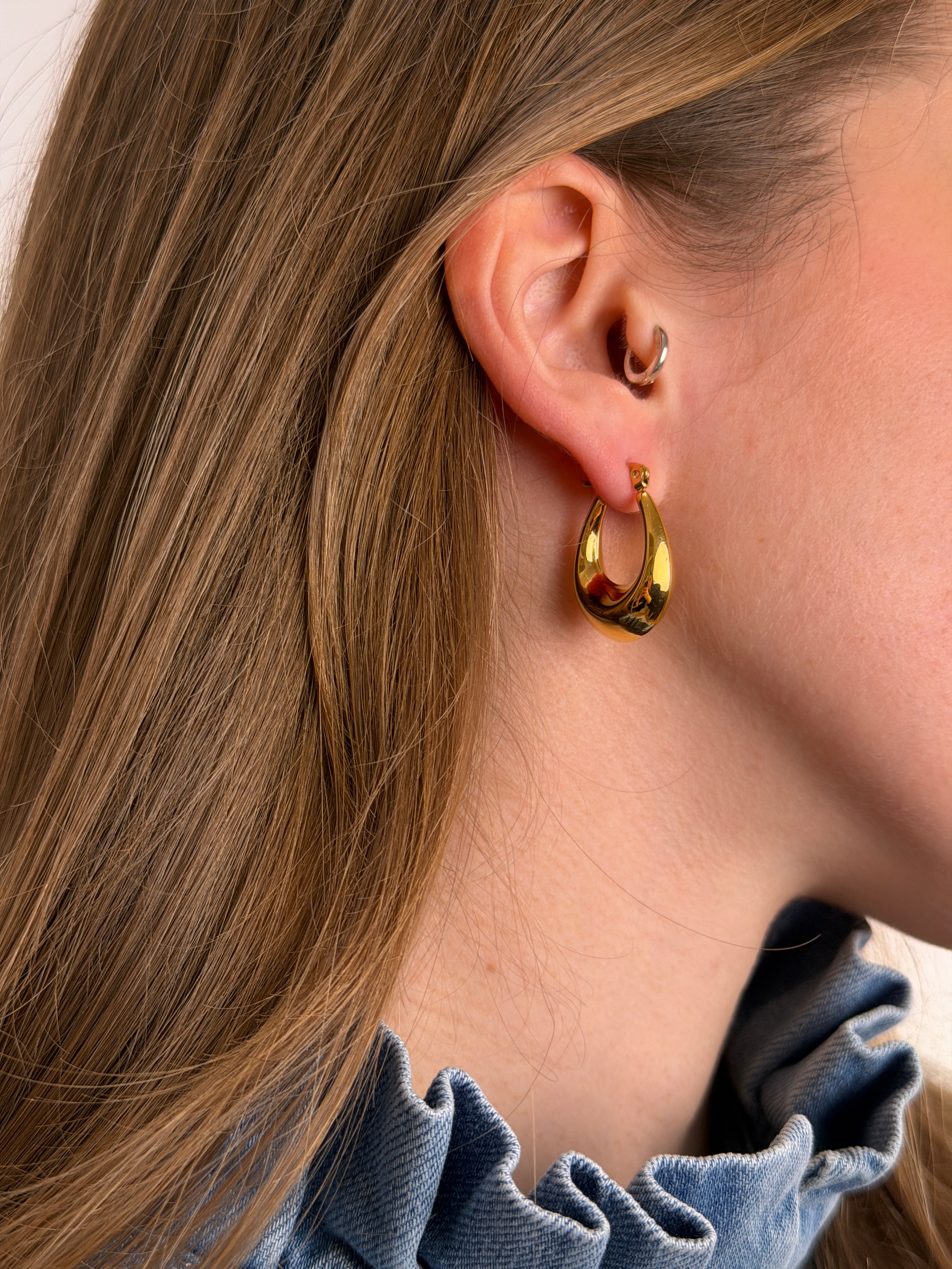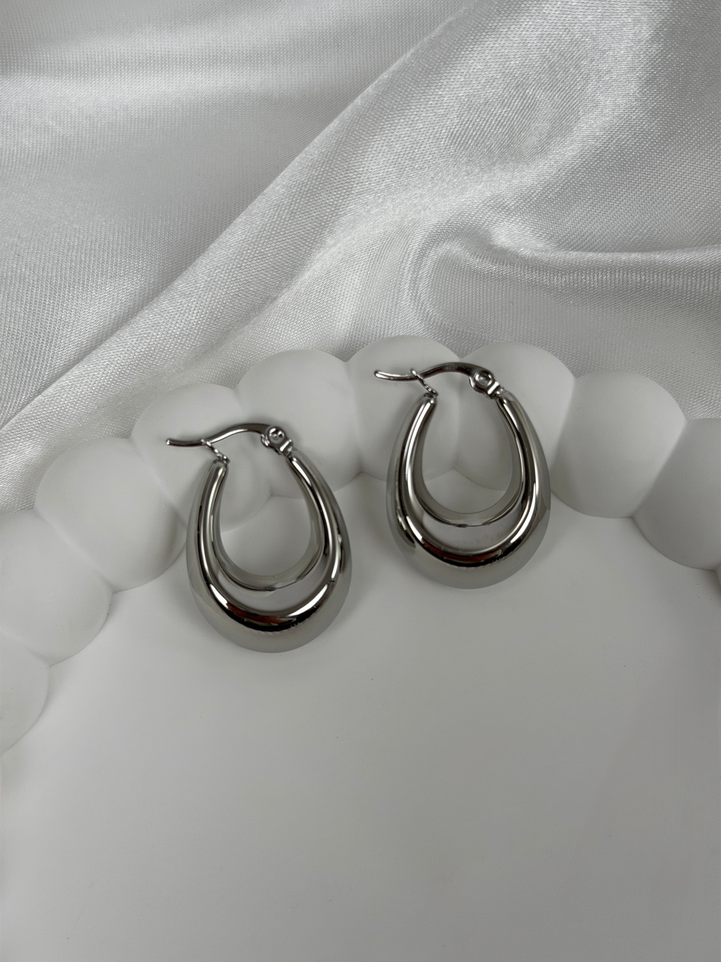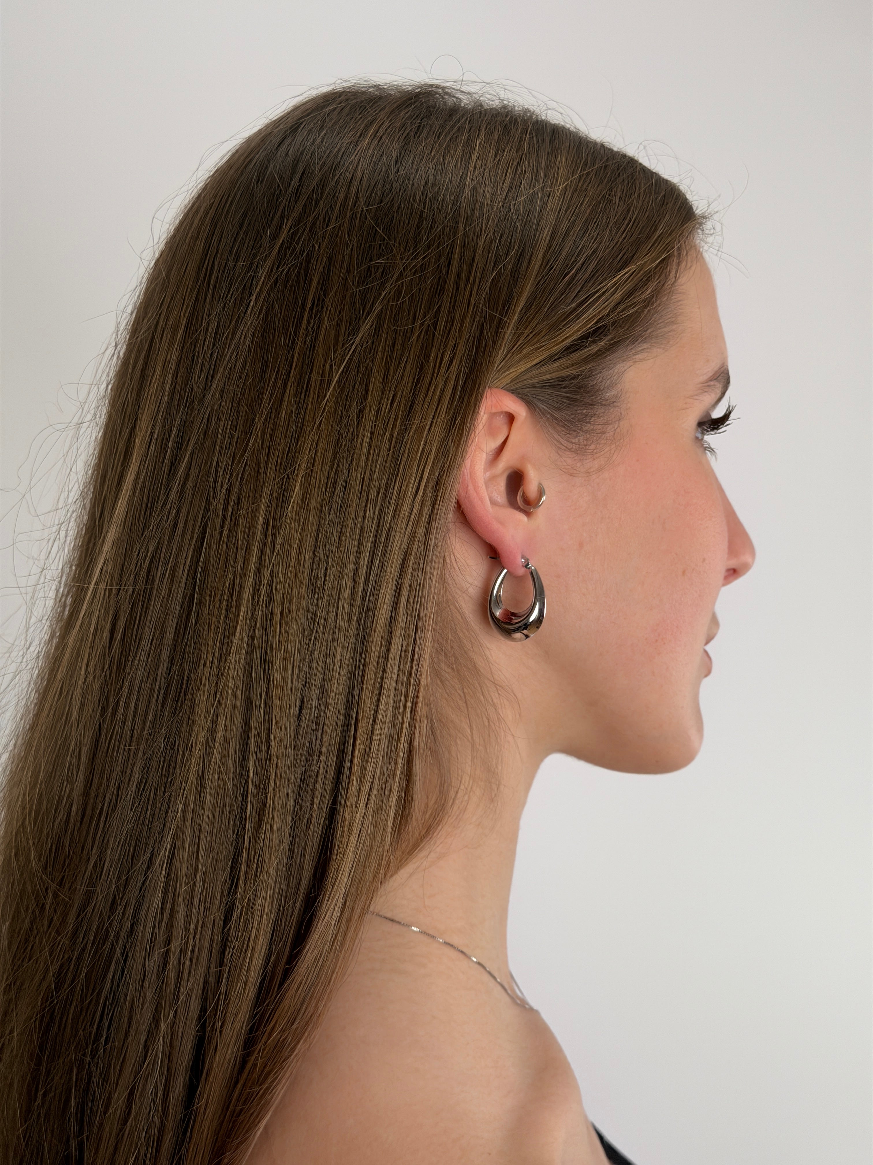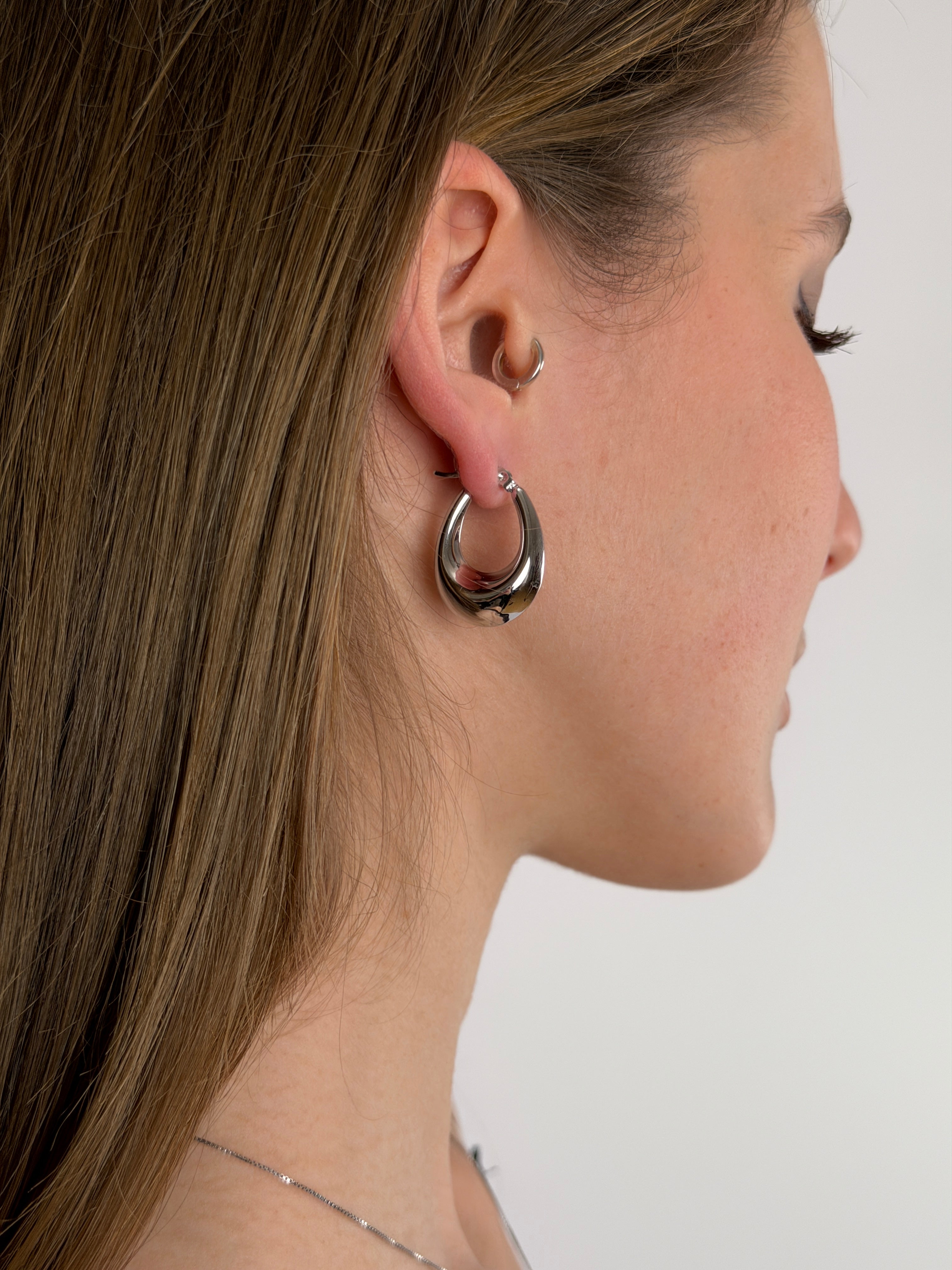 Orecchini hoop ovali, disponibili in color oro e argento
