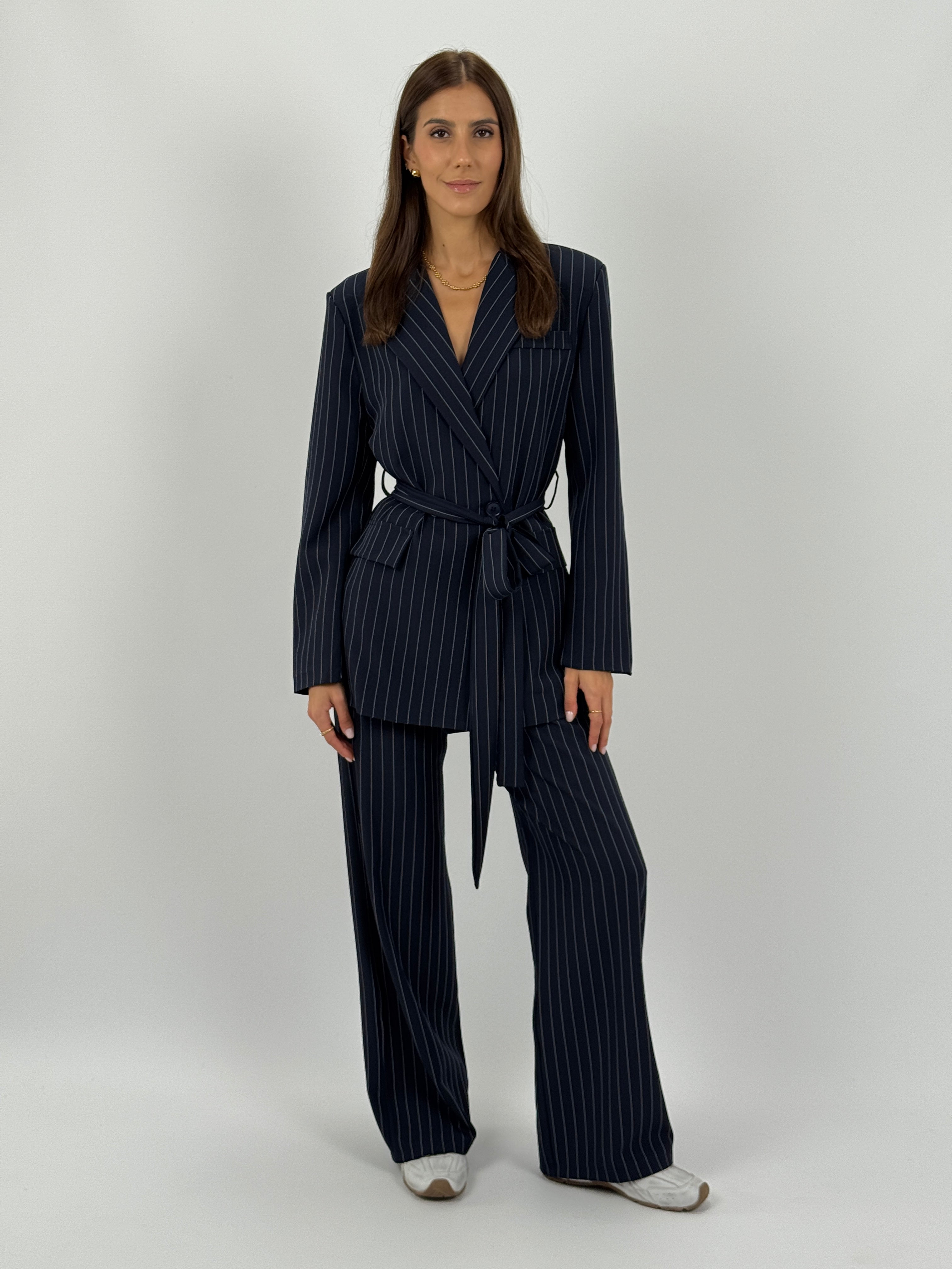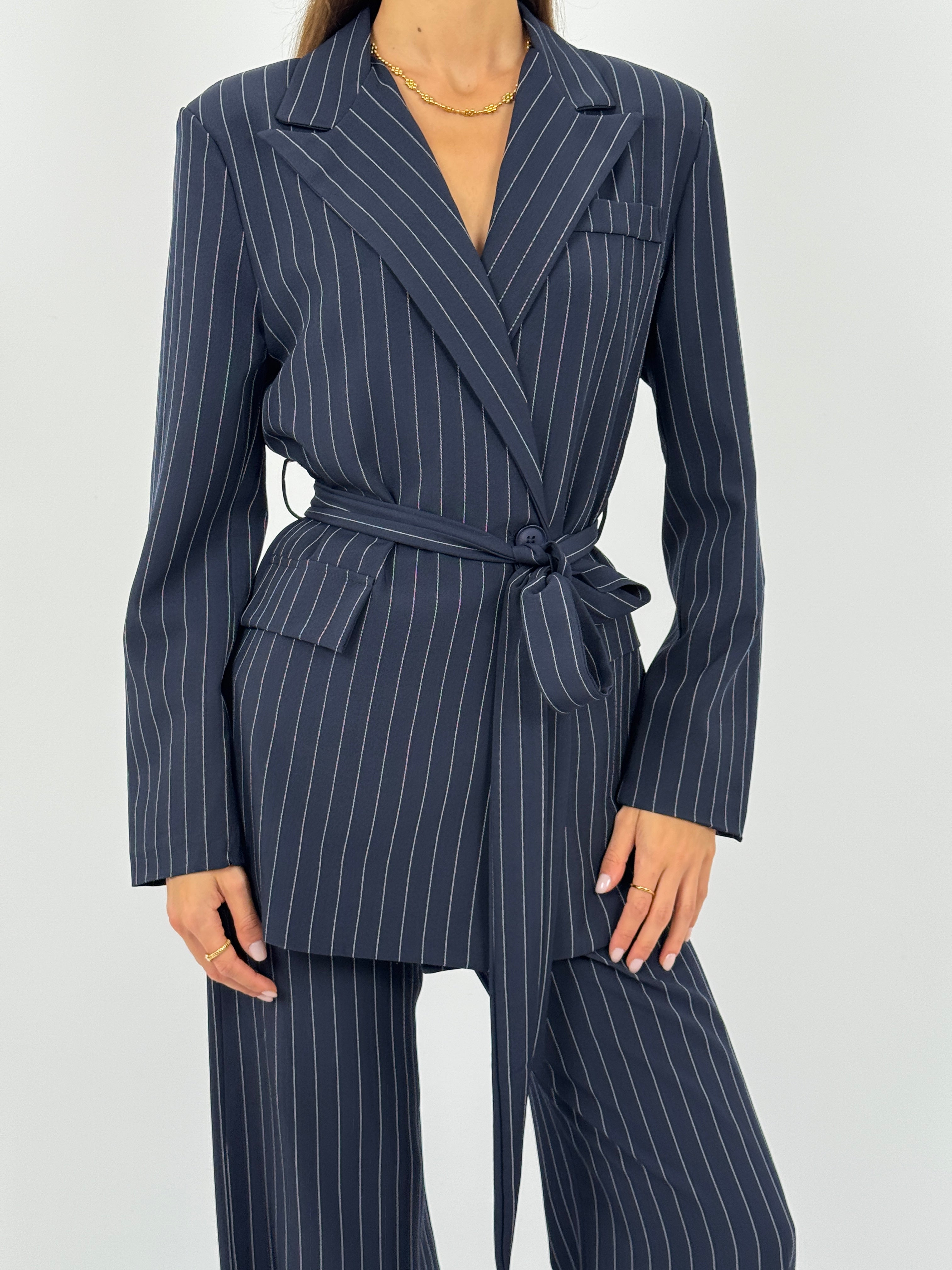 Tailleur Gessato con Cintura Brave Intense Blu