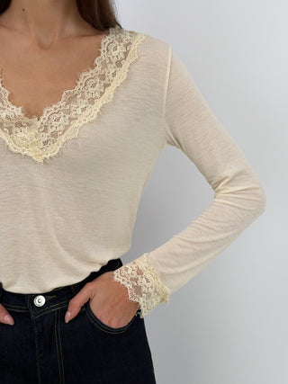Maglia Ultralight con Cashmere e Pizzo Burgundy