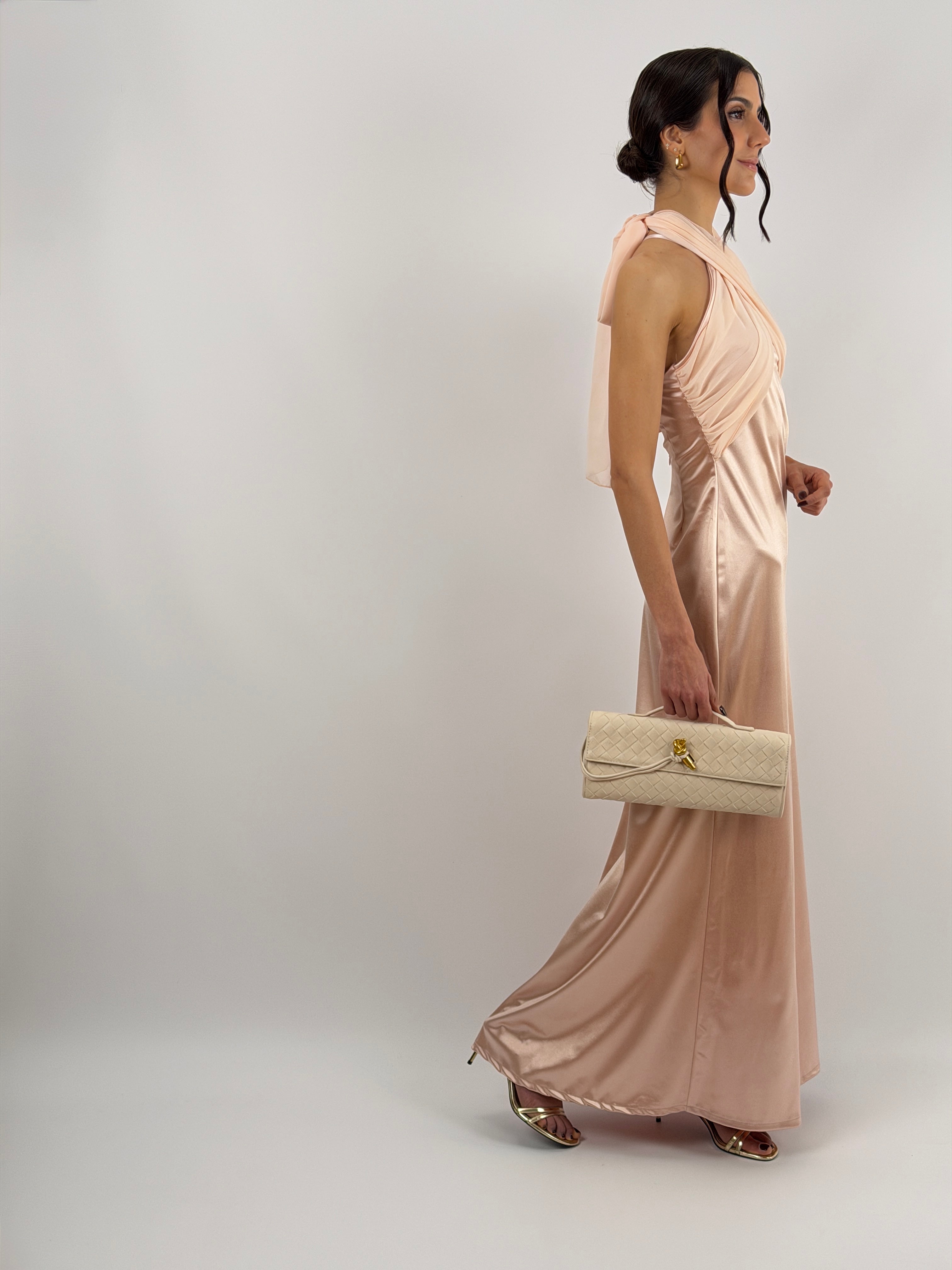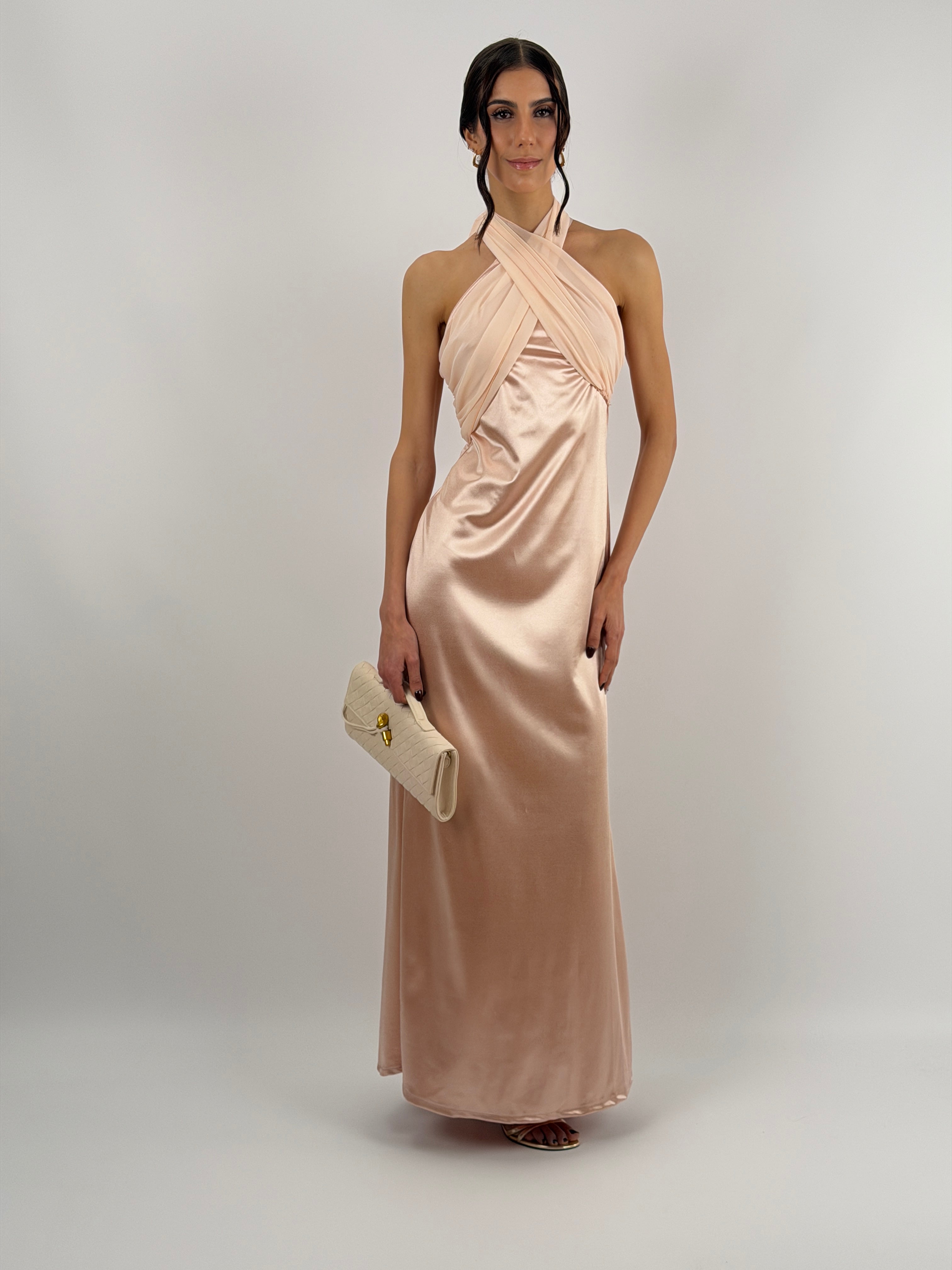 Abito Lungo con Collo Incrociato Rosa