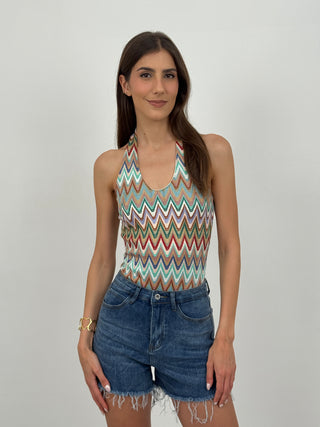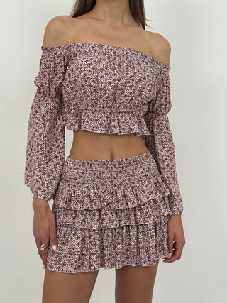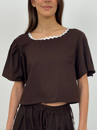 Set Coord Top e Gonna Beige con Bordi a Contrasto