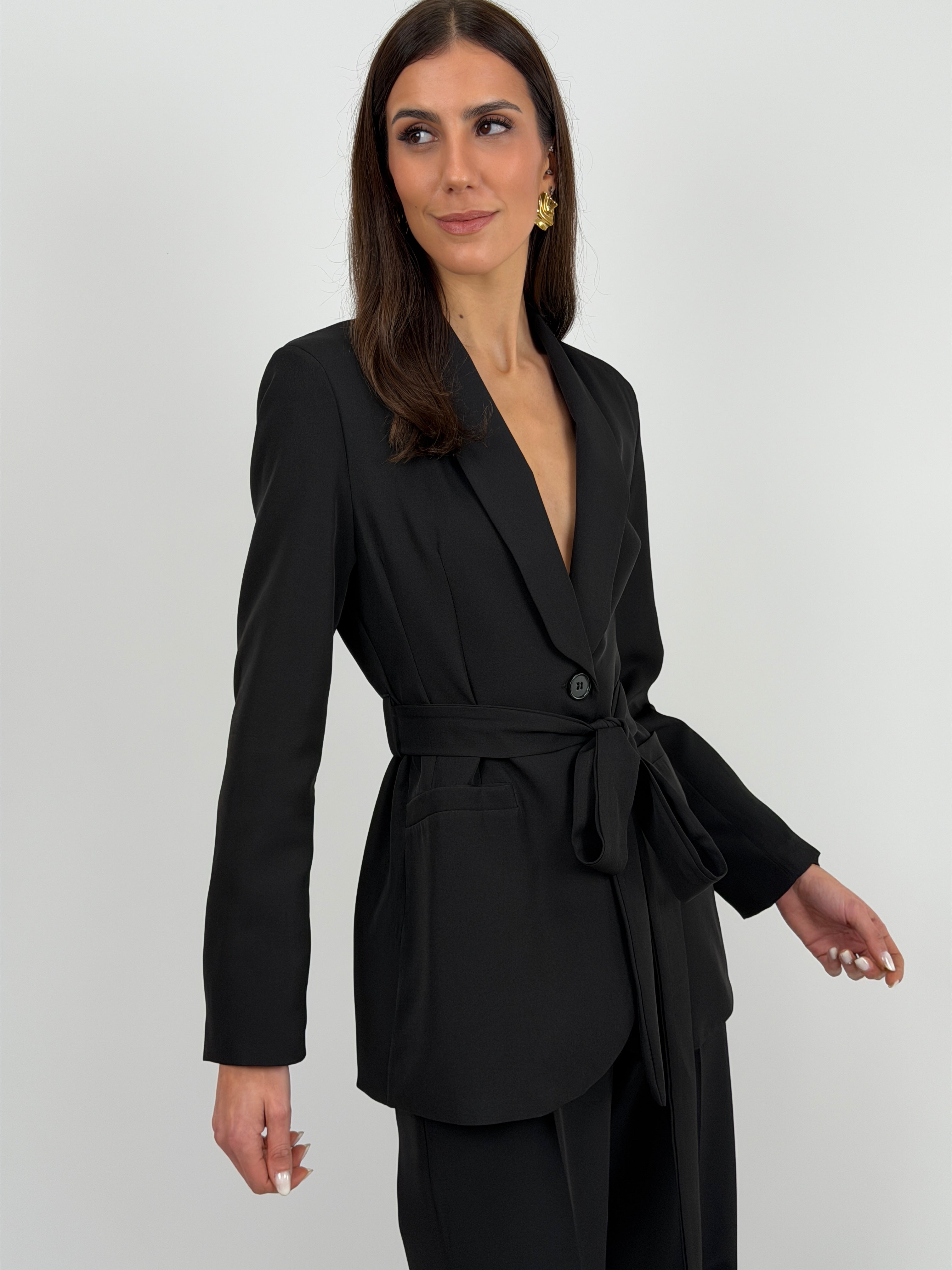 Completo Blazer con Cintura e Pantalone Nero