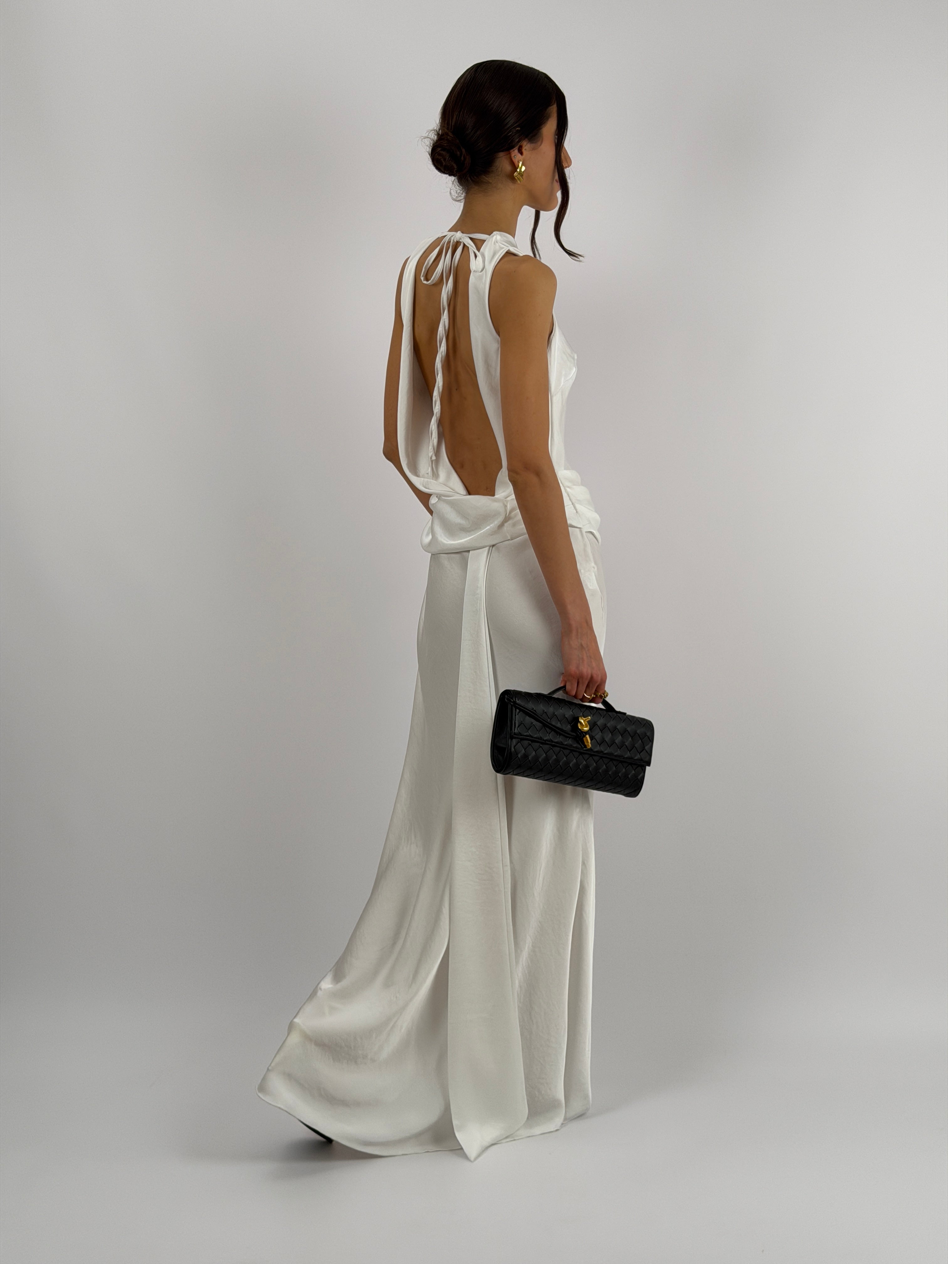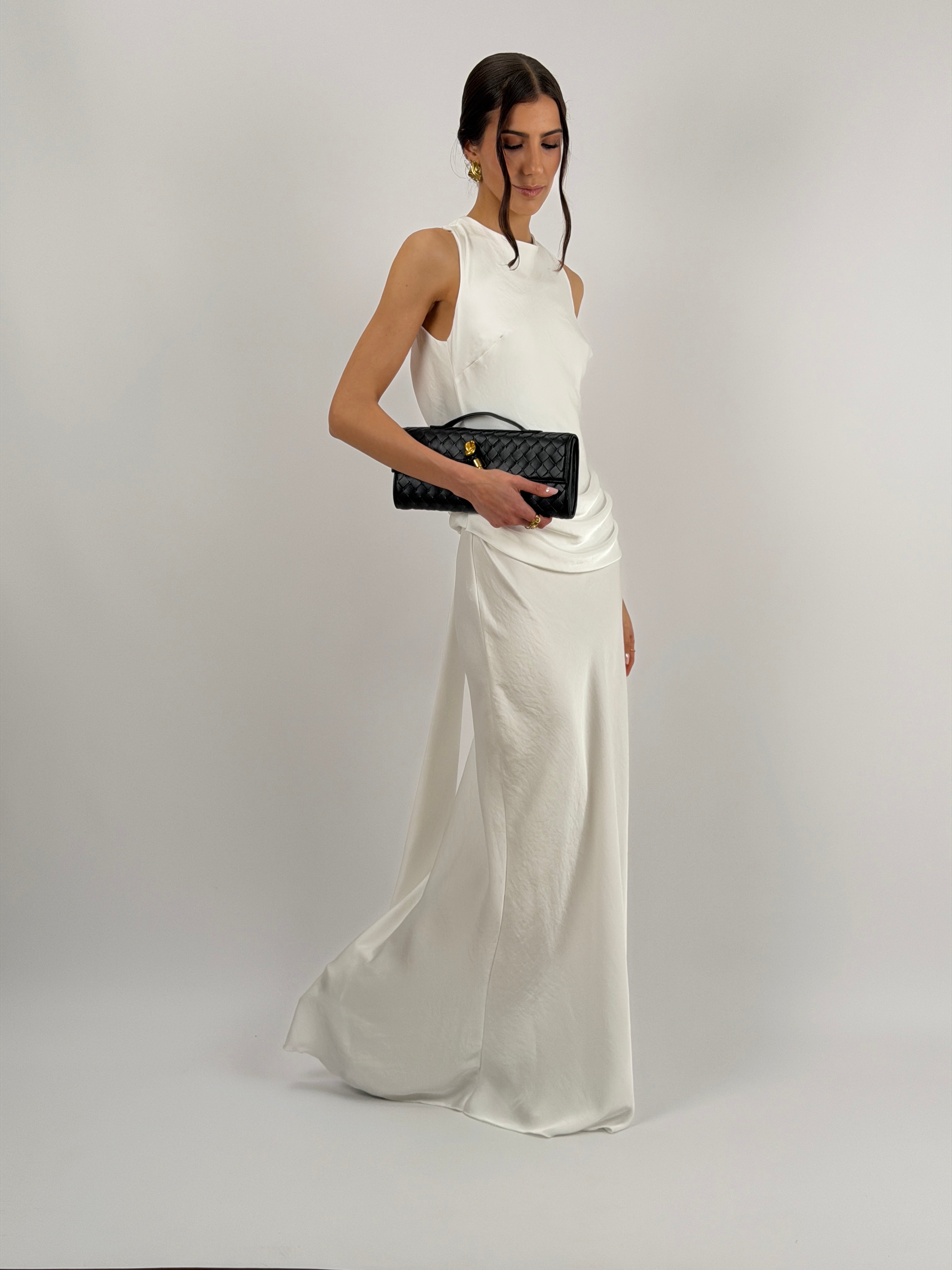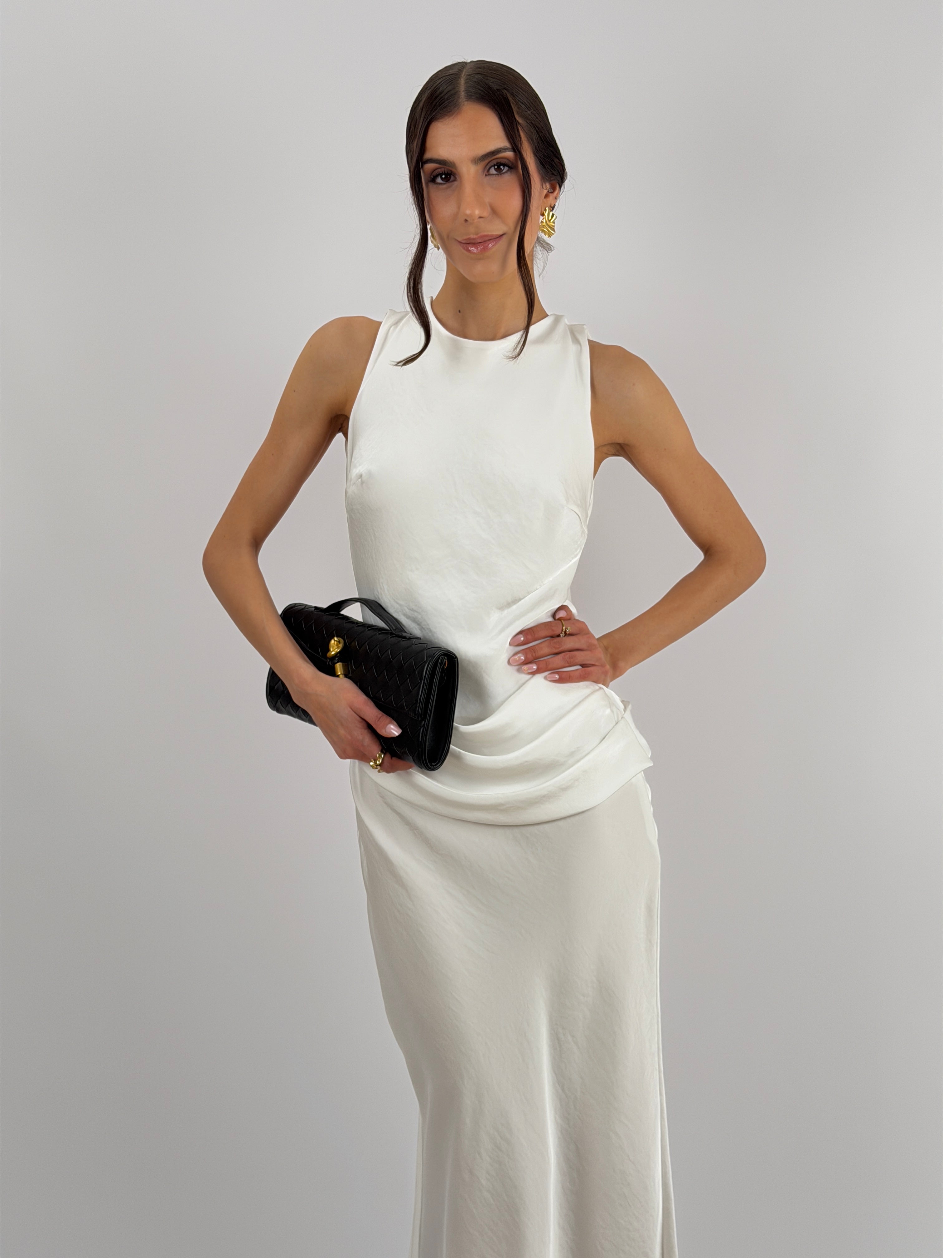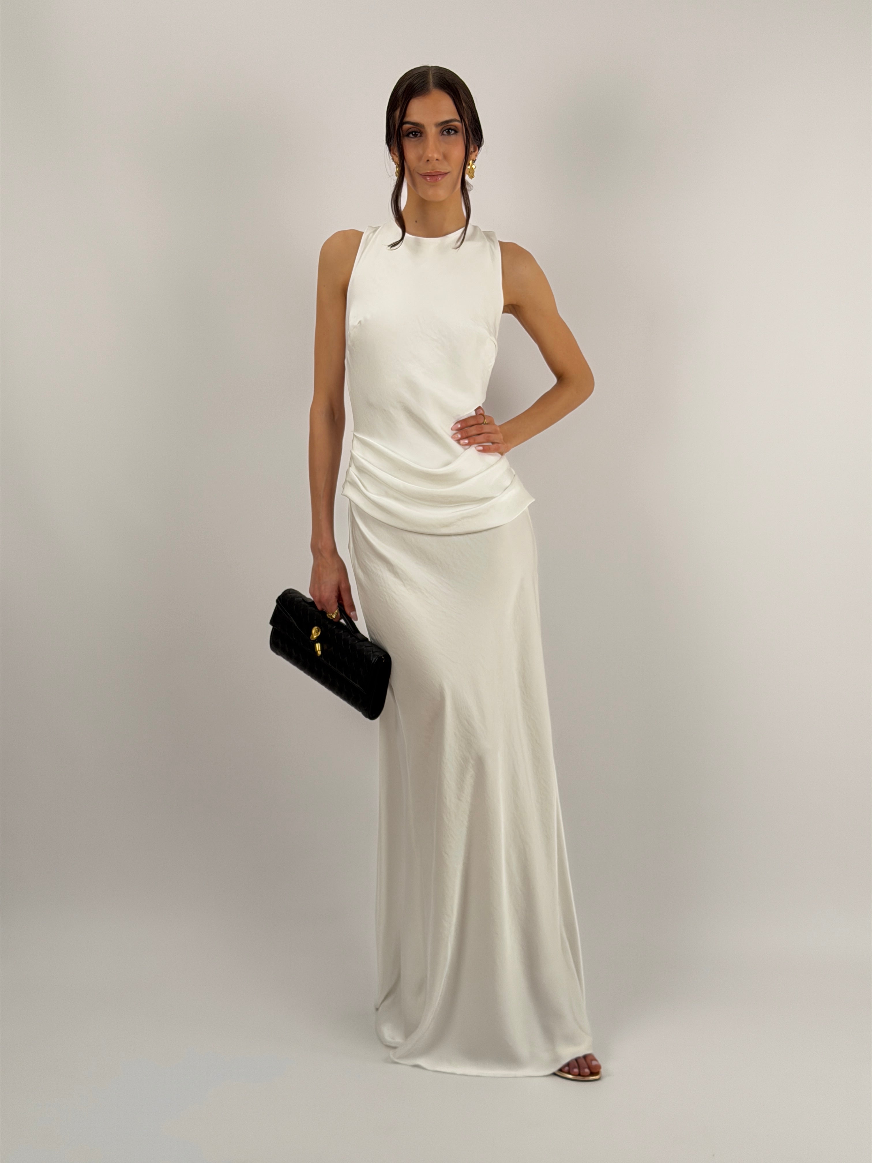 Abito Lungo con Fascia in Vita Bianco