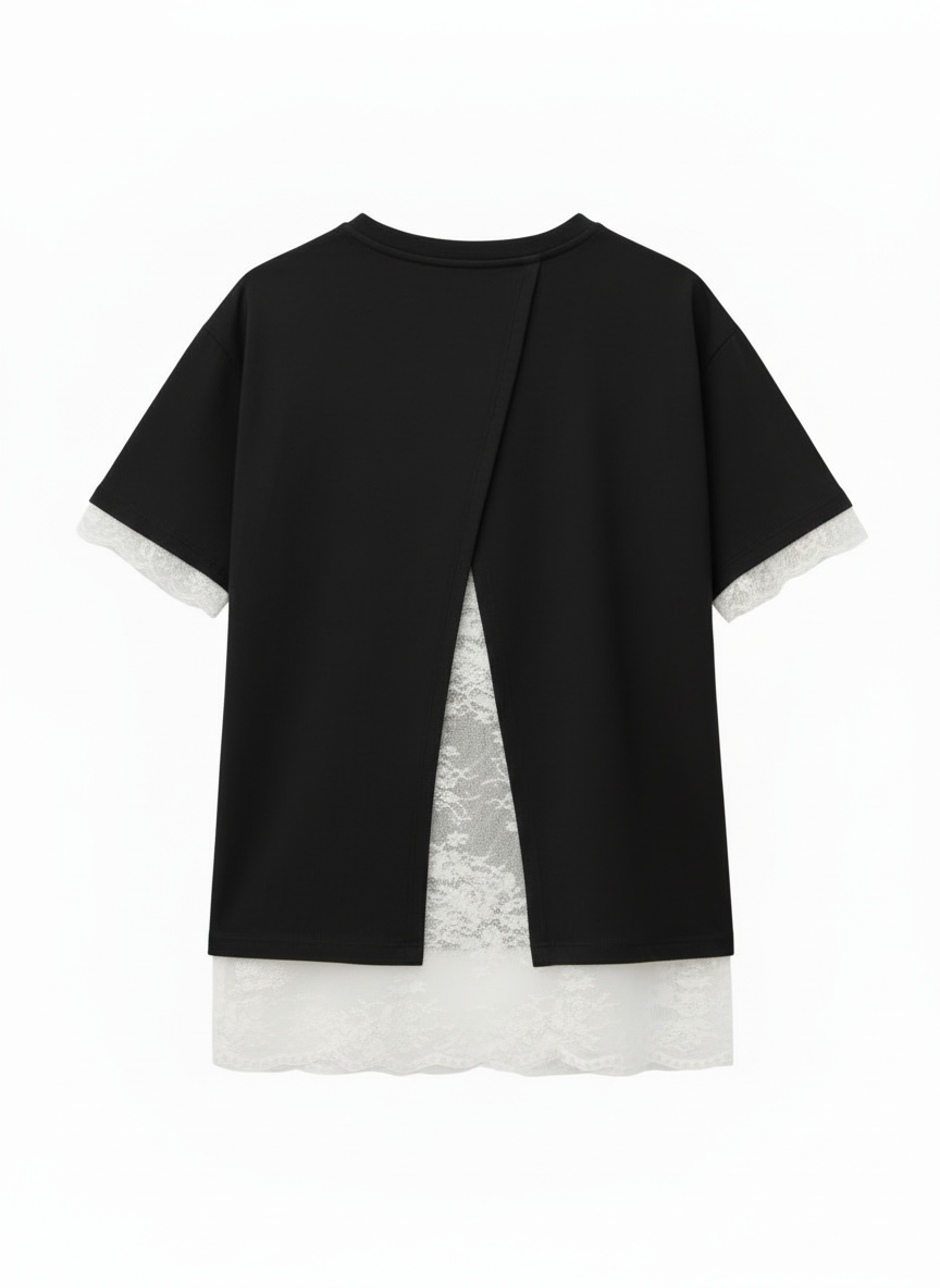 T-Shirt Lumina con Pizzo Nera