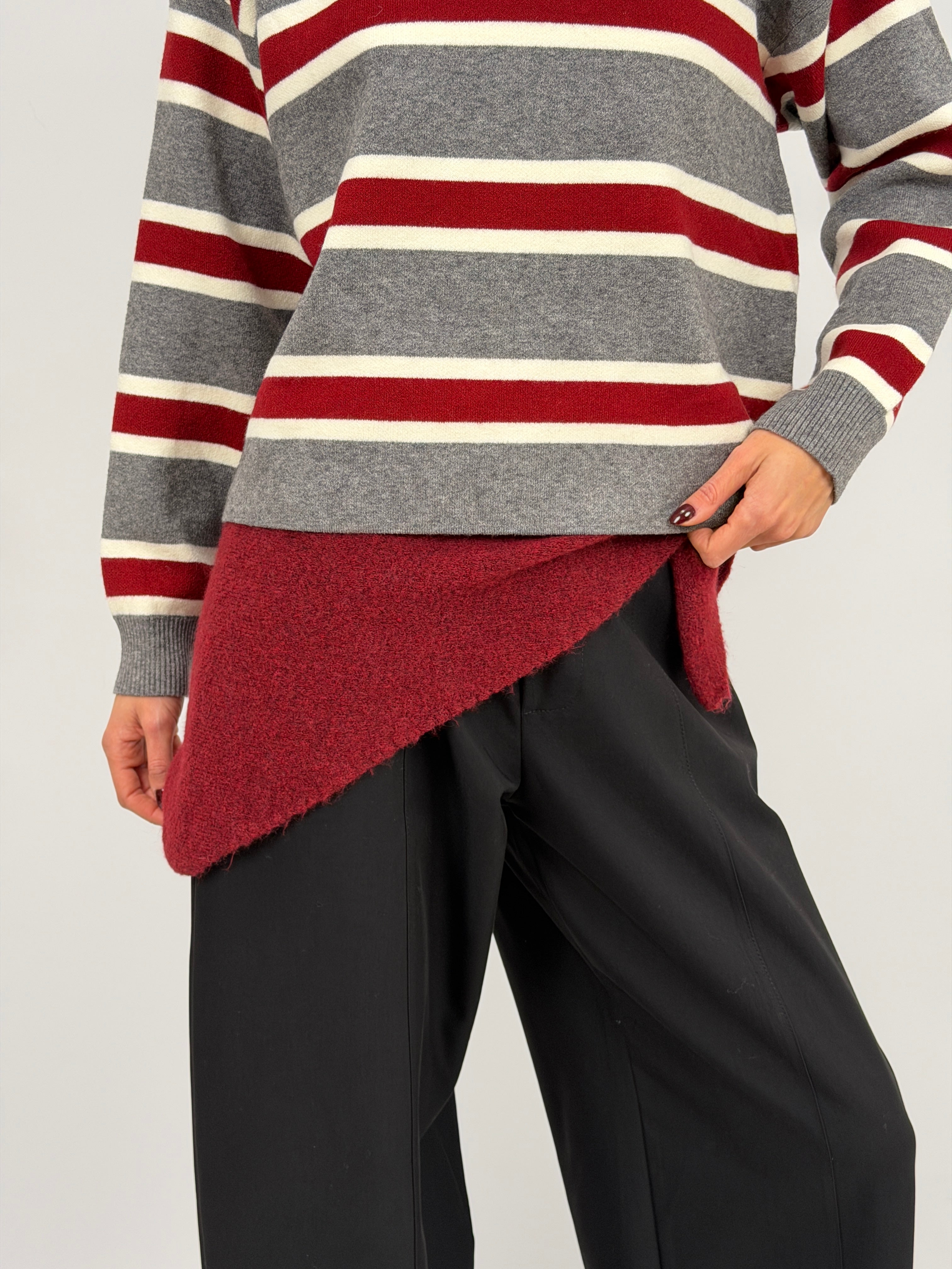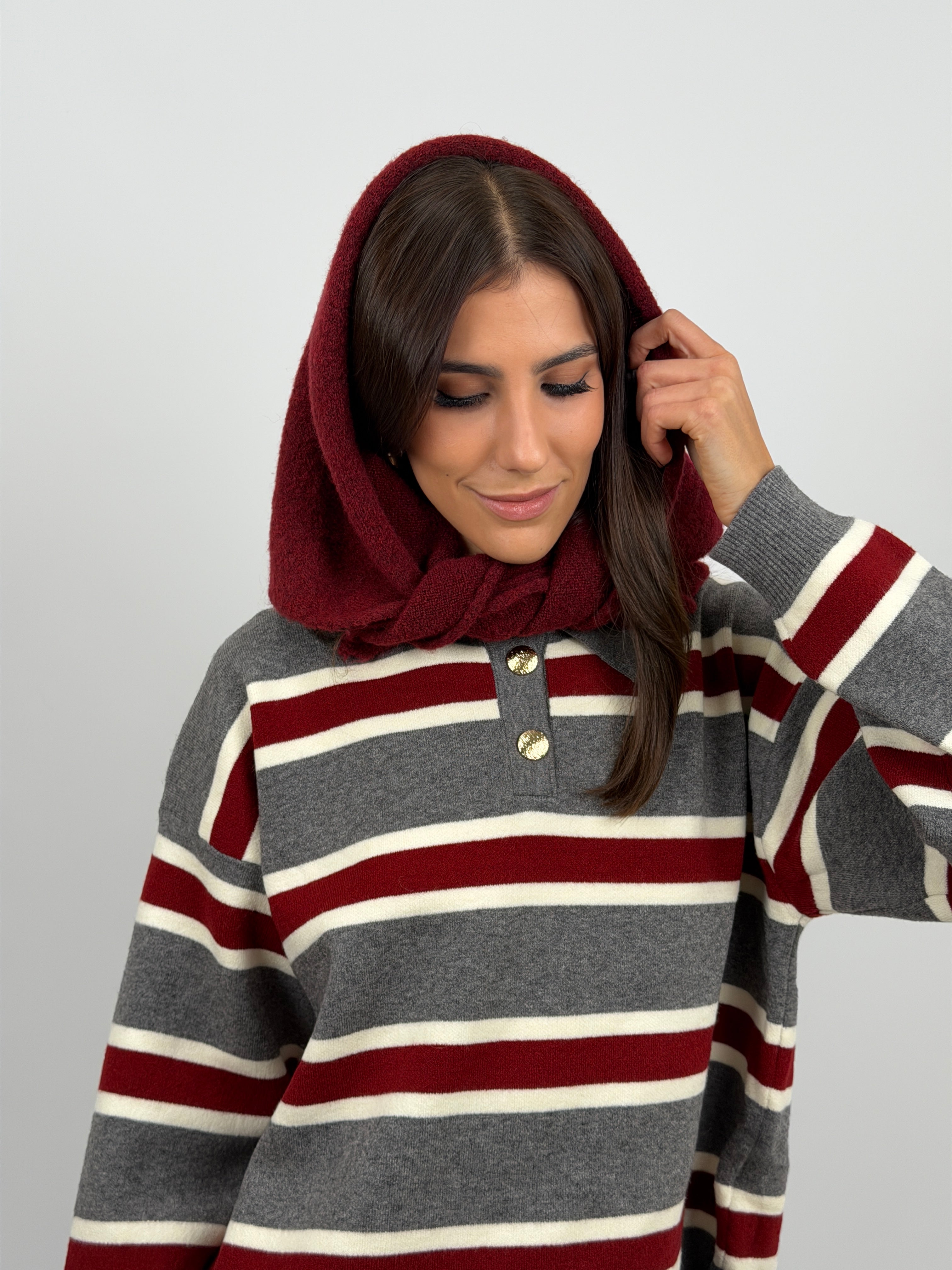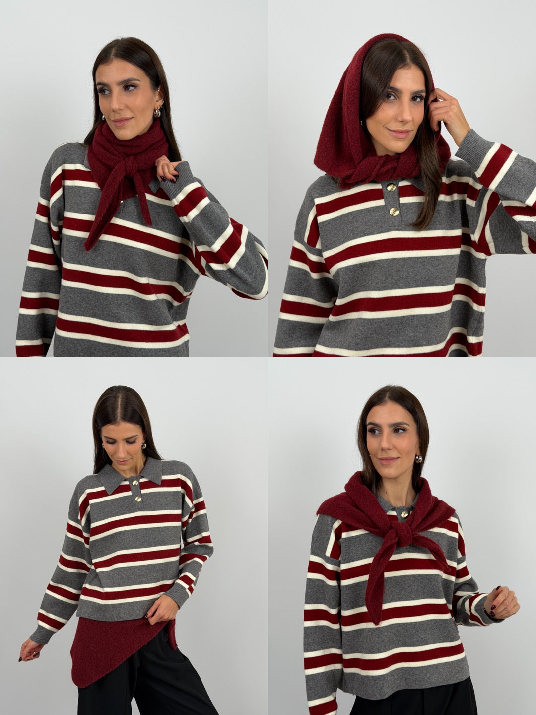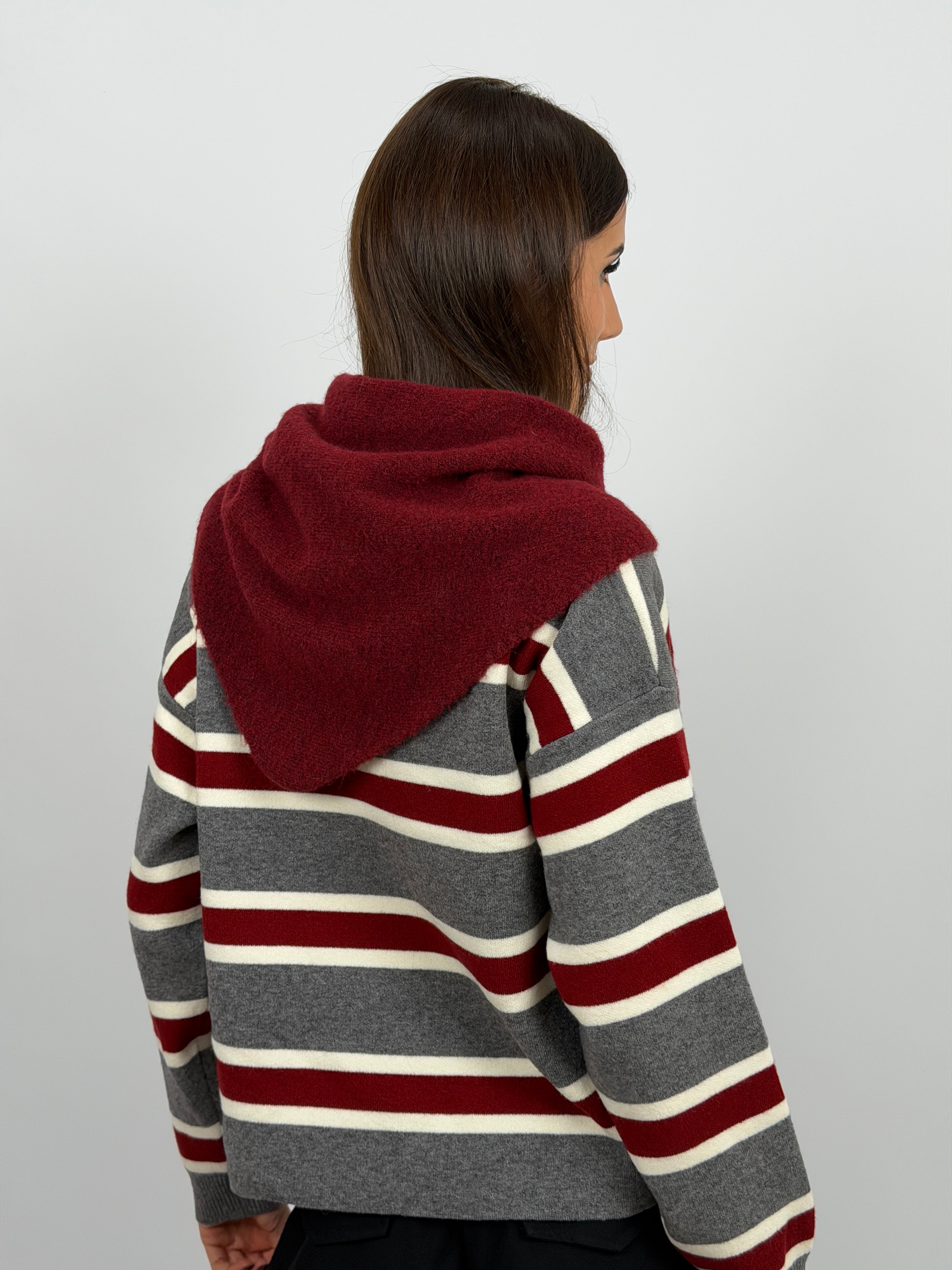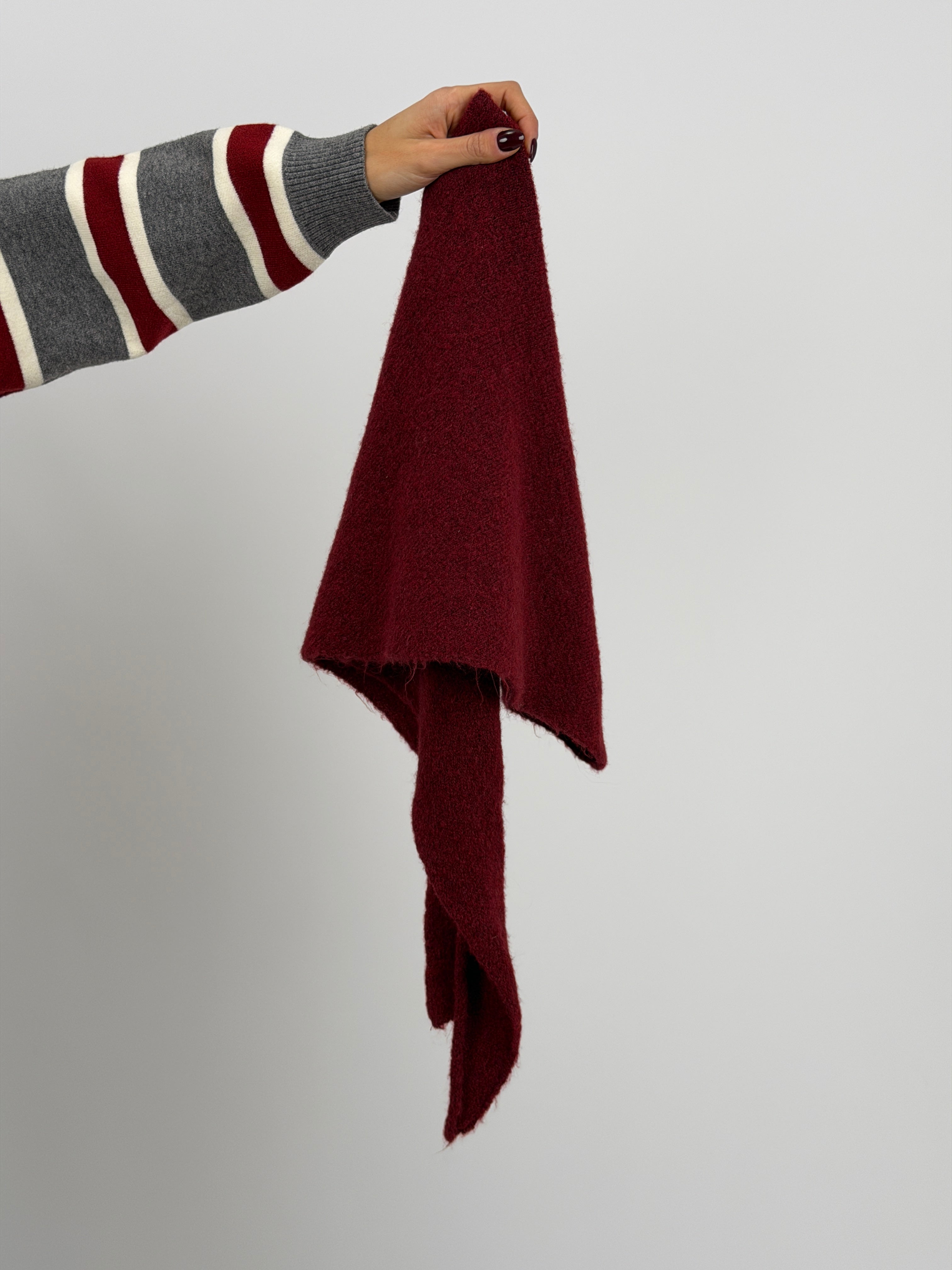 Sciarpa triangolare bordeaux versatile da indossare in 4 modi diversi, morbida e avvolgente. Accessorio pratico e di tendenza.