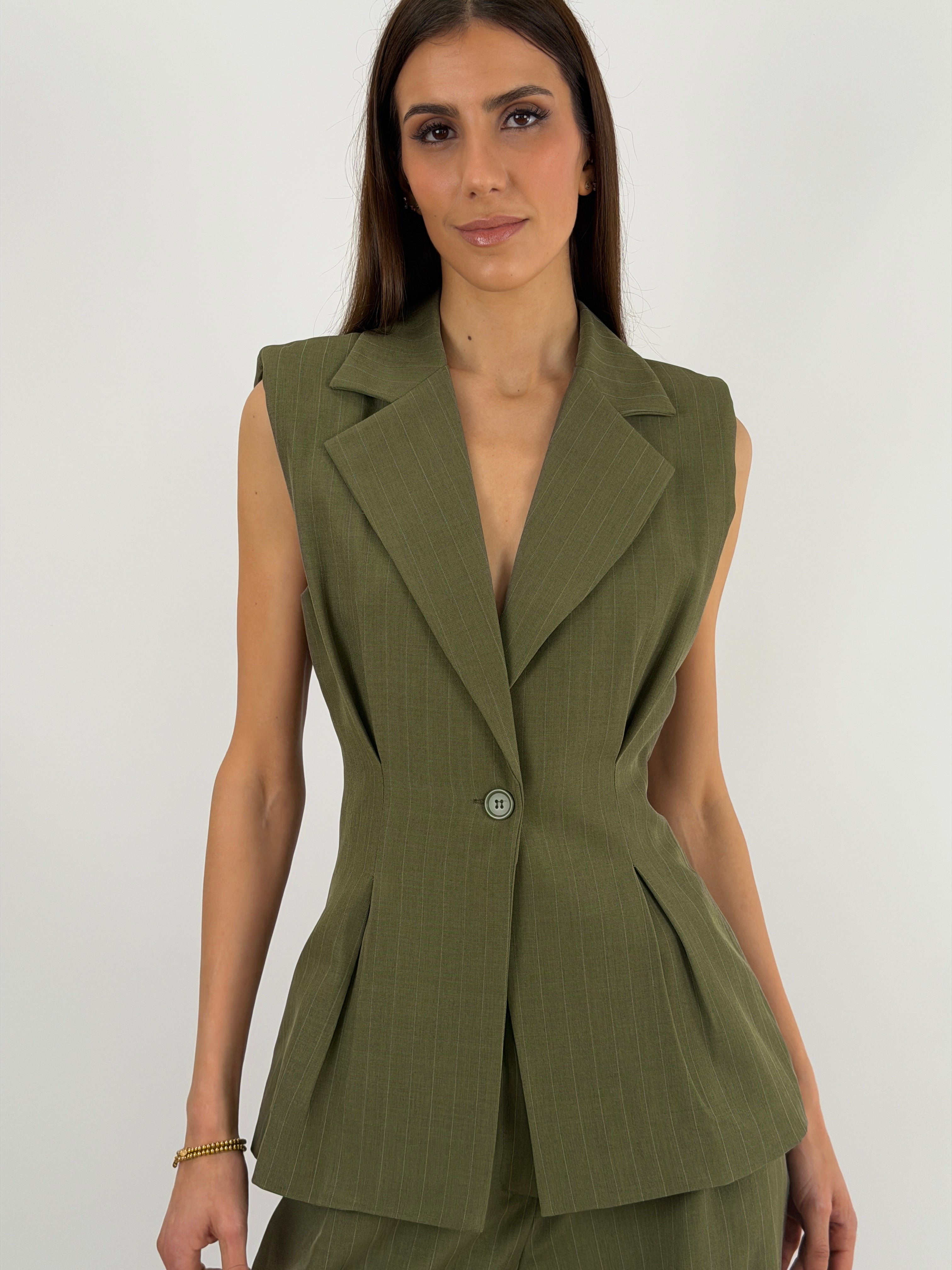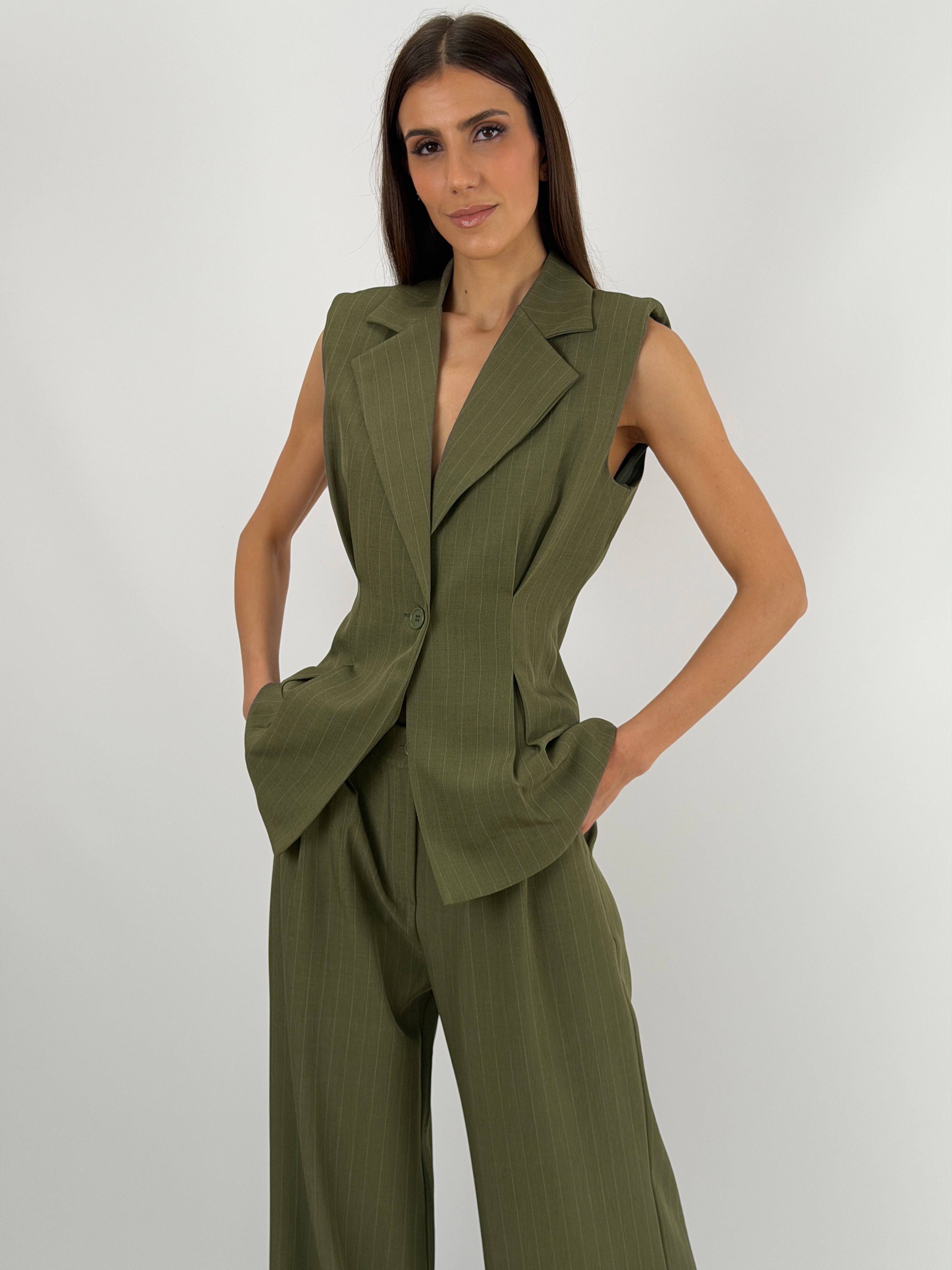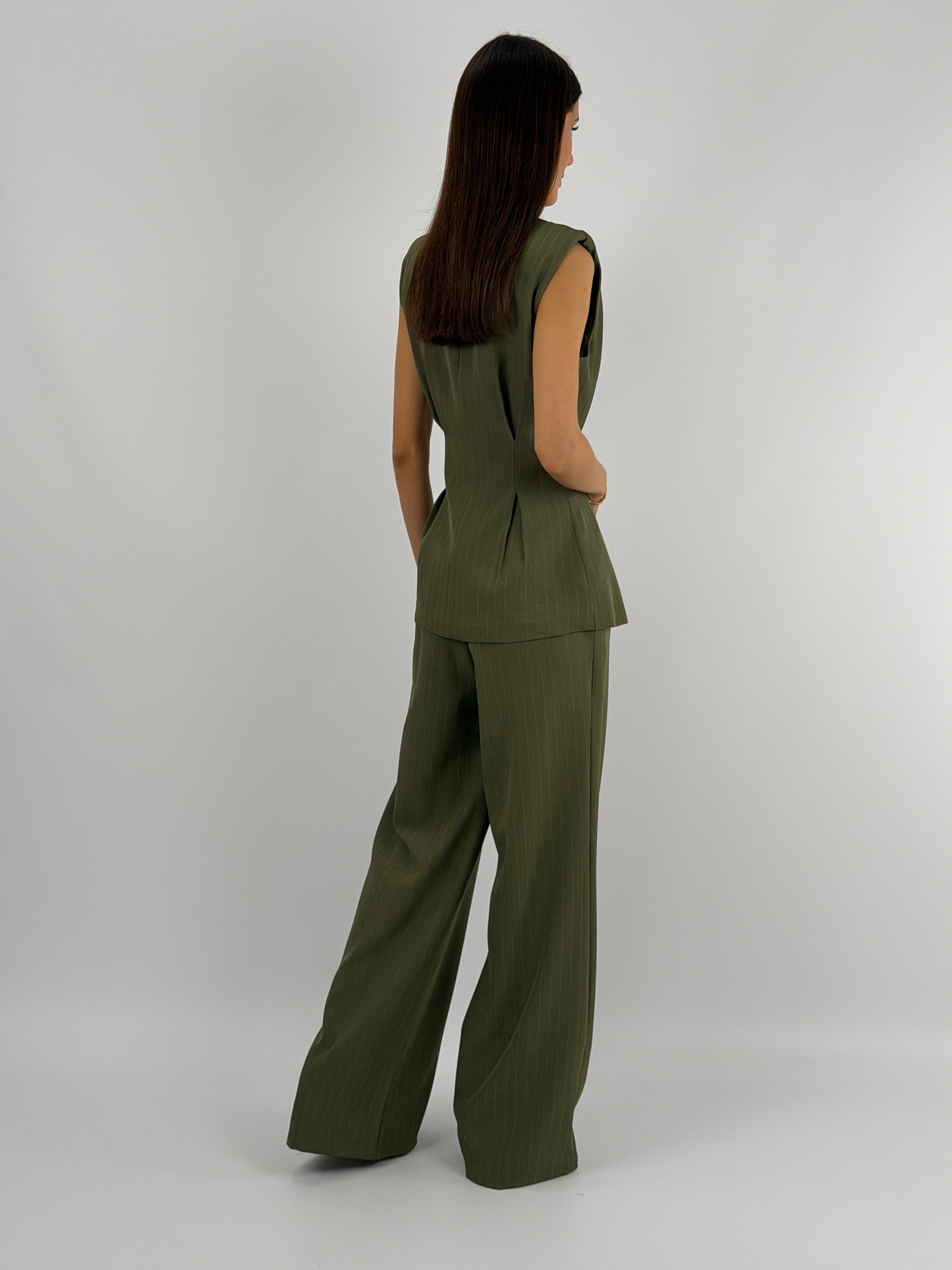 Completo Gessato con Gilet Verde