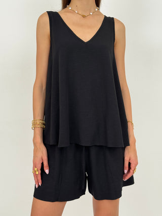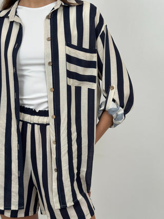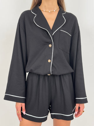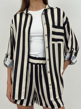 Coordinato Camicia e Shorts con Bordi a Contrasto Nero