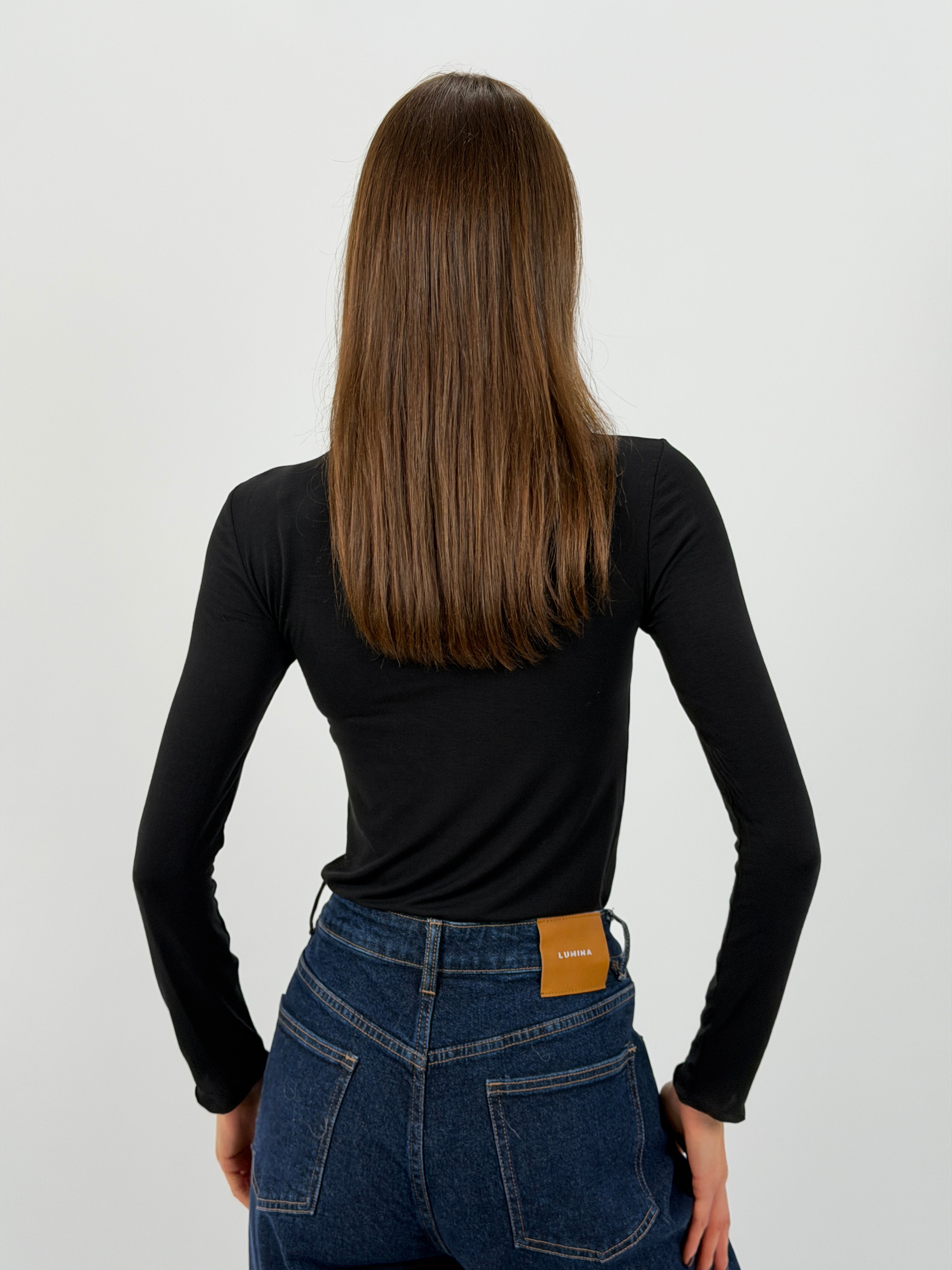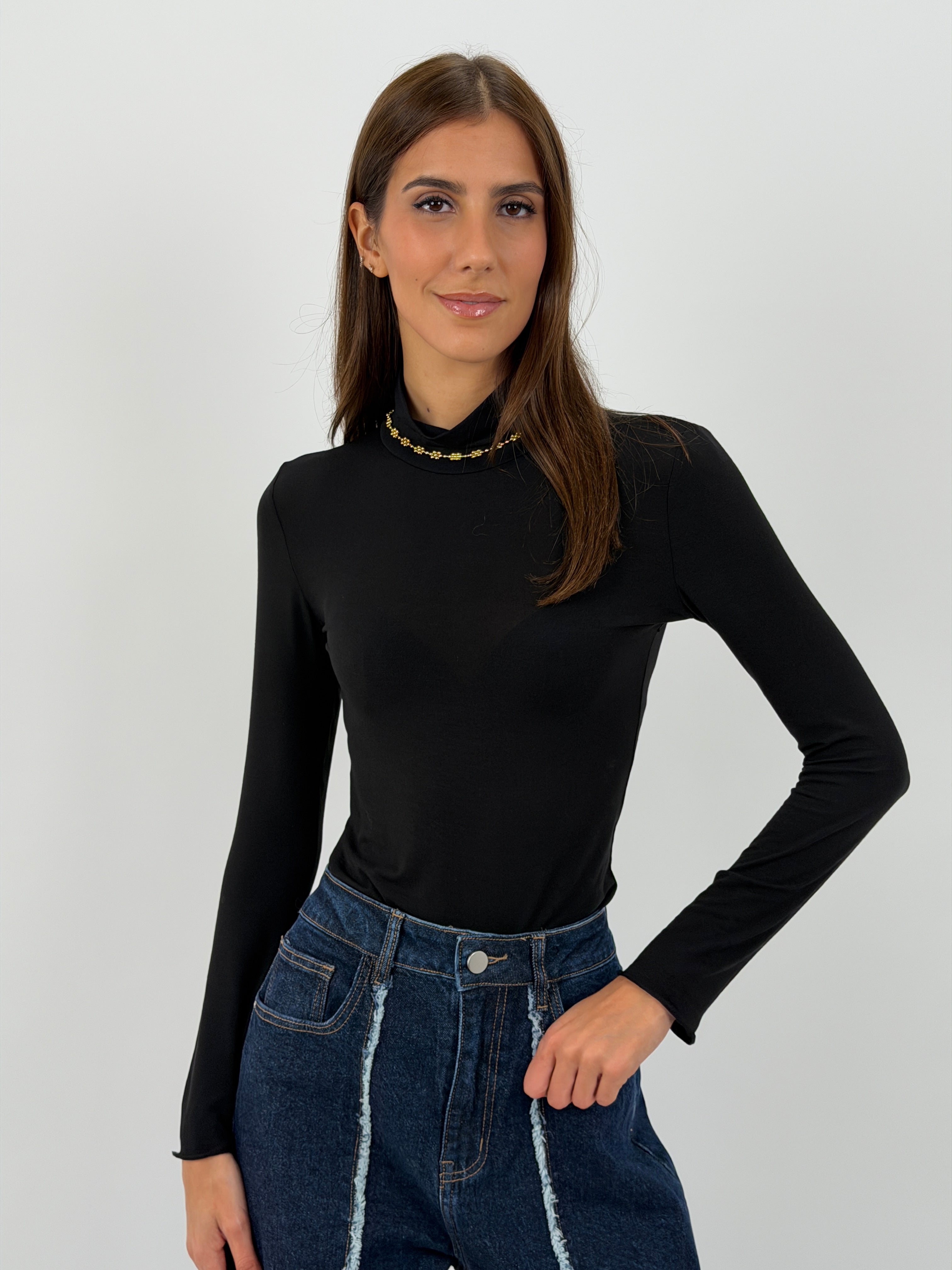 Maglia dolcevita nero con collo alto in tessuto leggero e morbido misto cashmere.