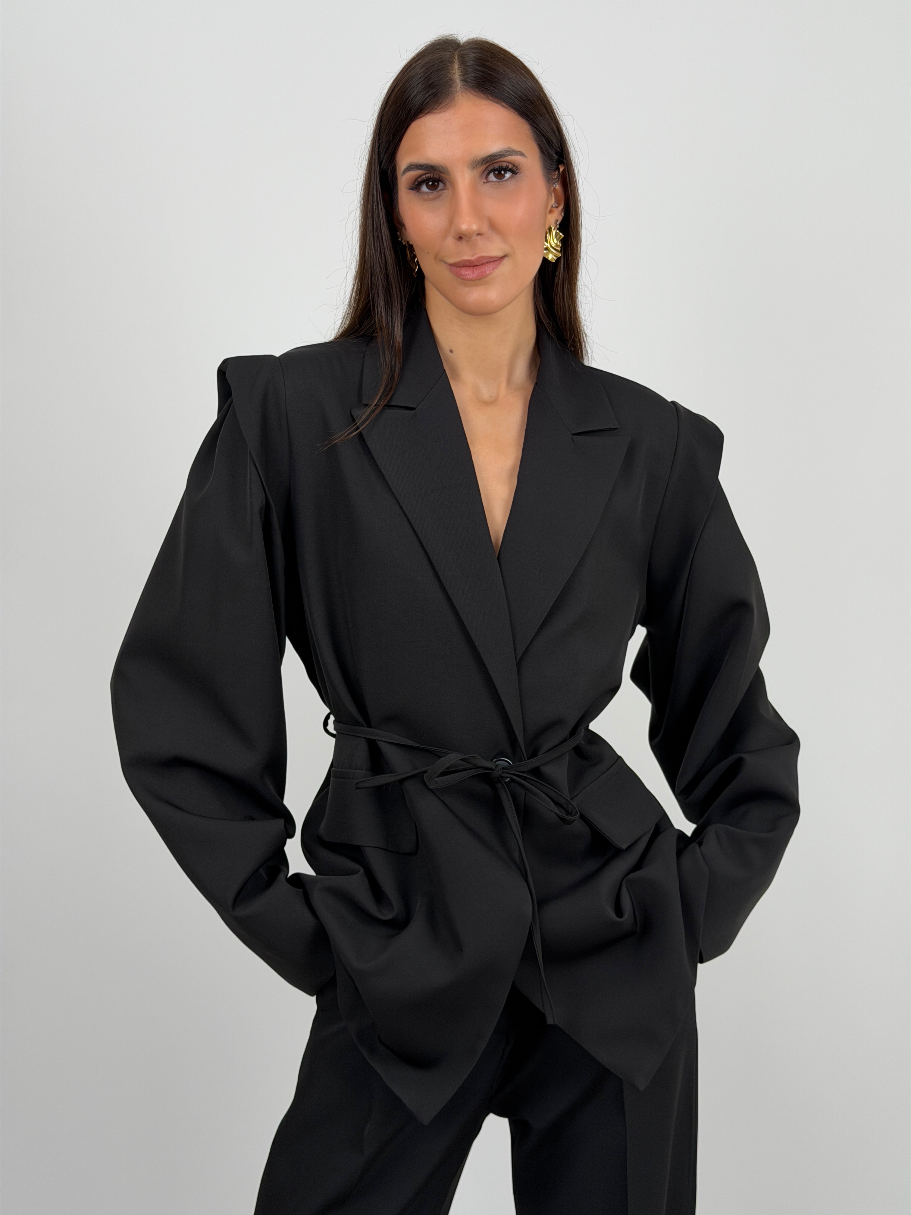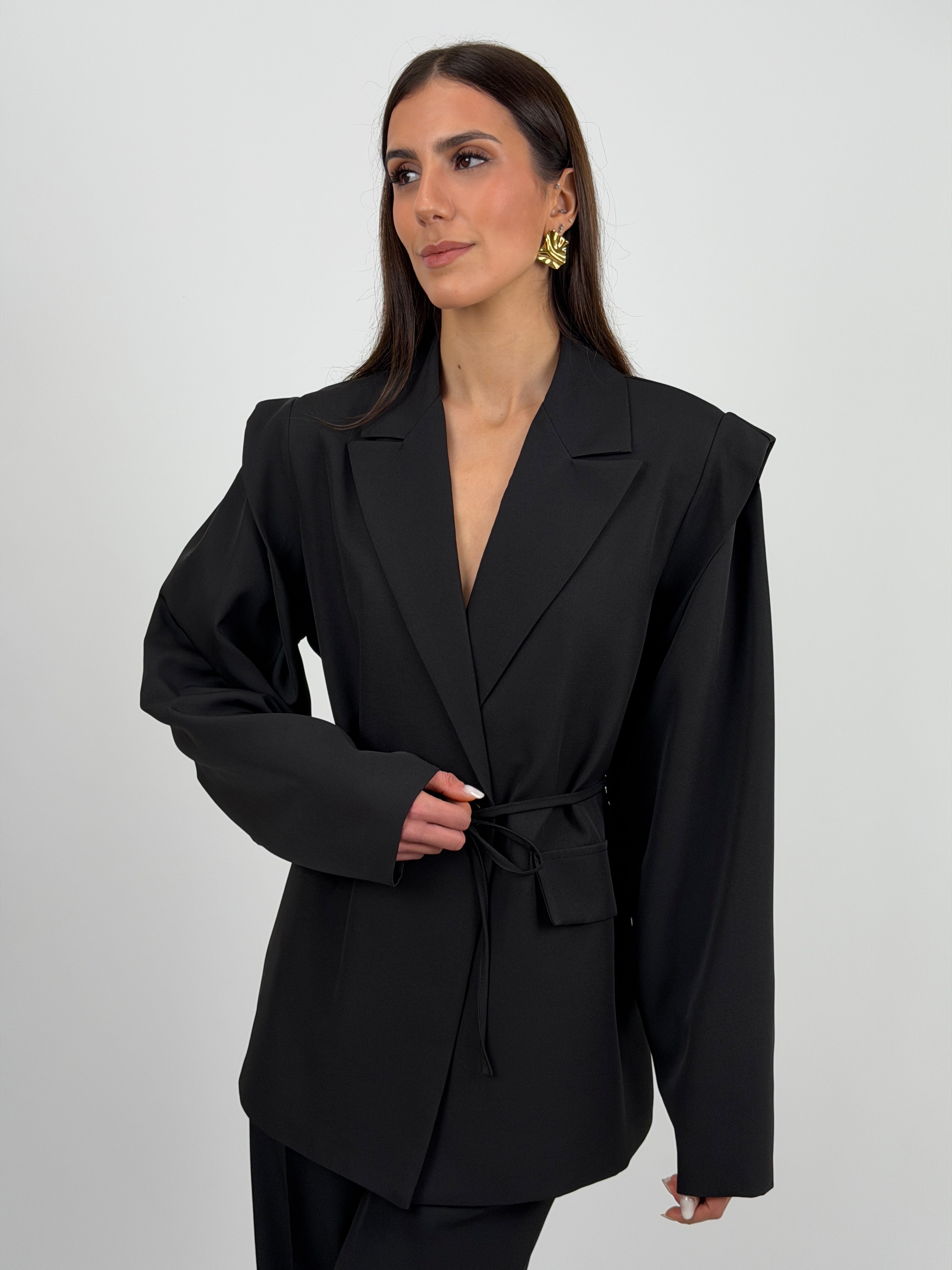Blazer con Spalle Strutturate Nero