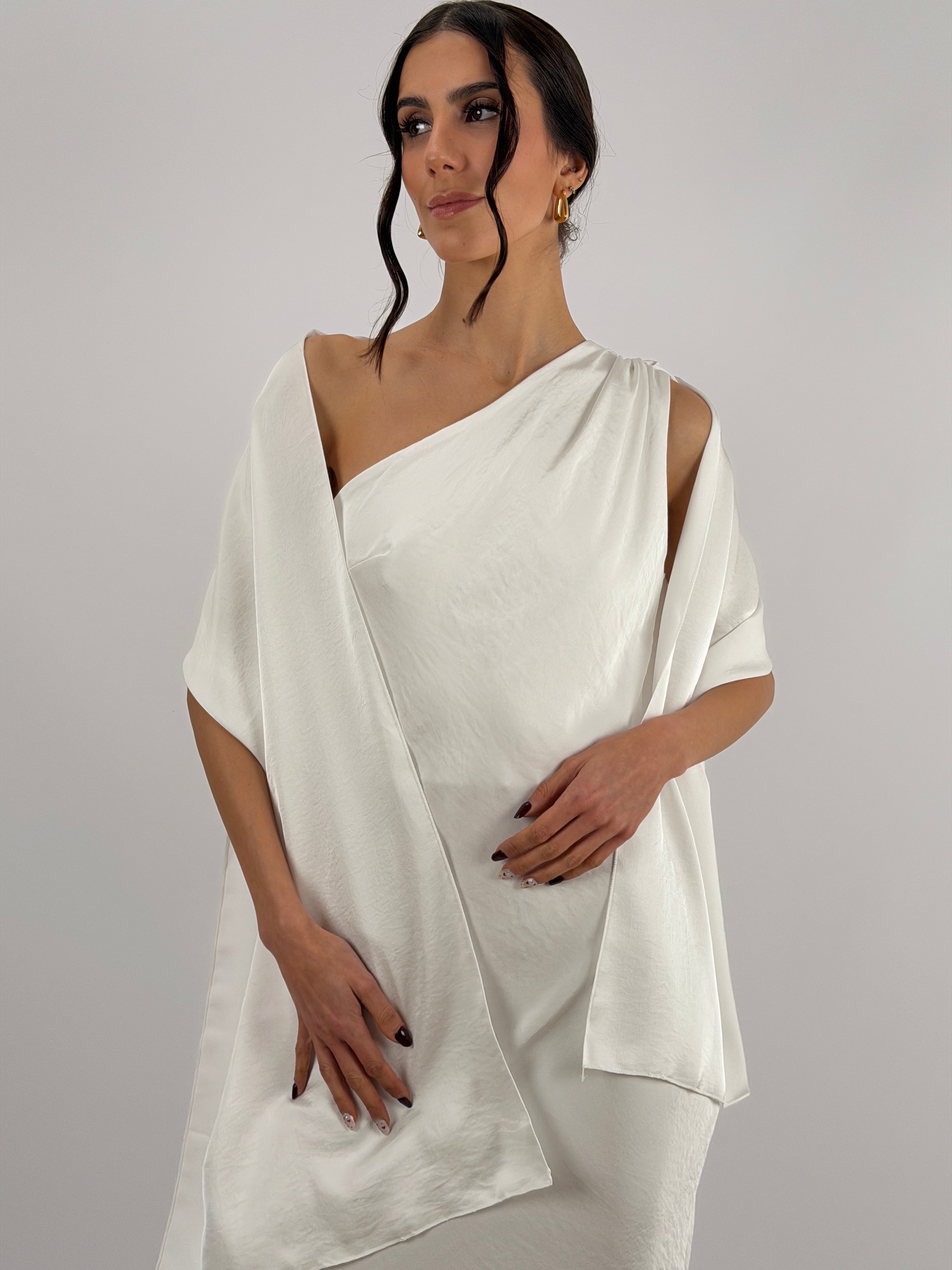 Stola copri spalle bianca da cerimonia in tessuto satinato