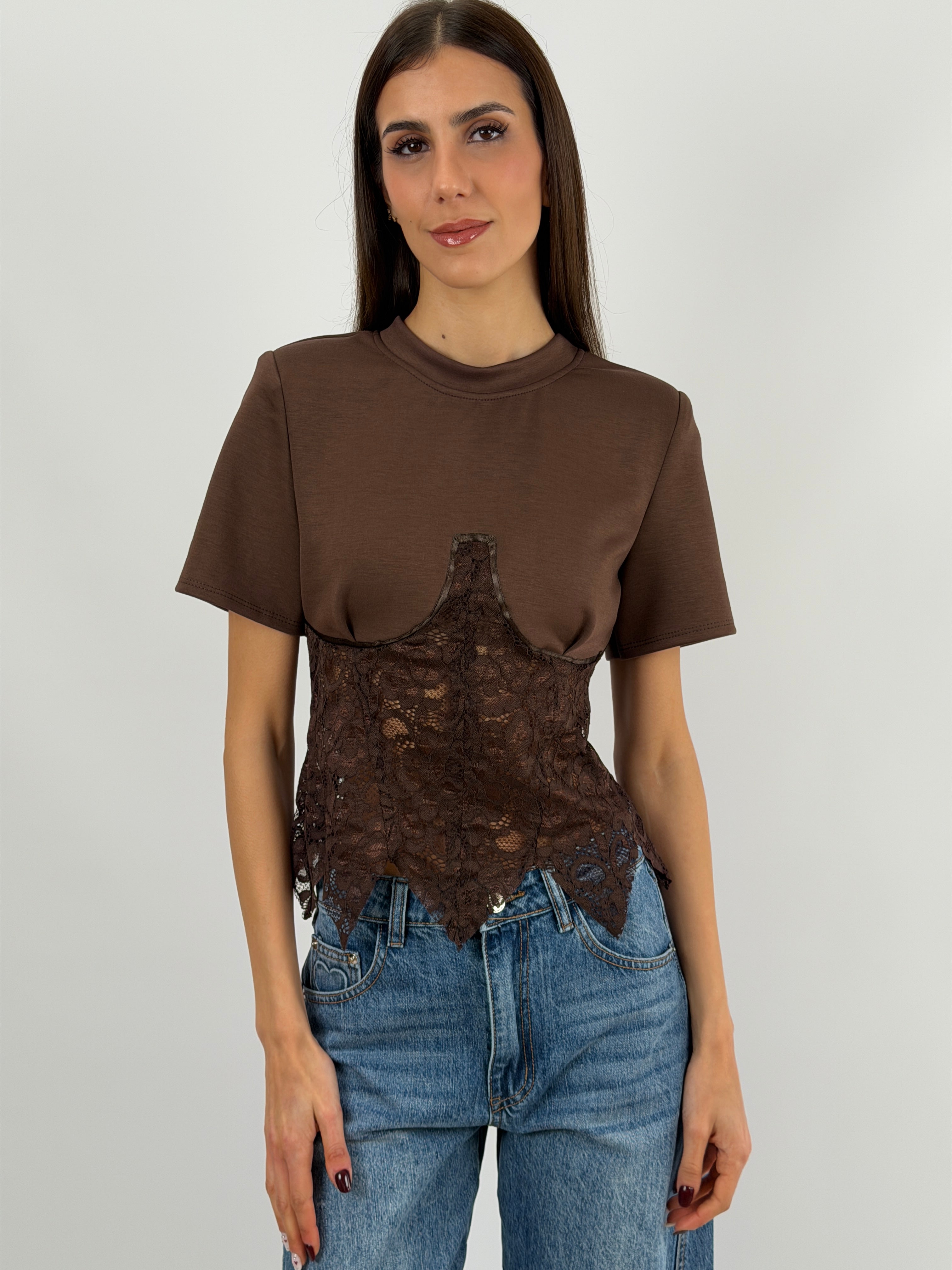 T-Shirt con Corsetto Marrone