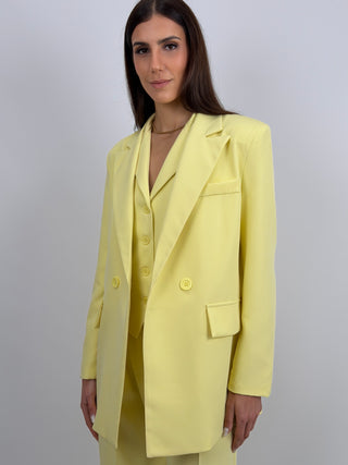 Gilet smanicato giallo con revers, chiusura frontale con bottoni e fodera interna