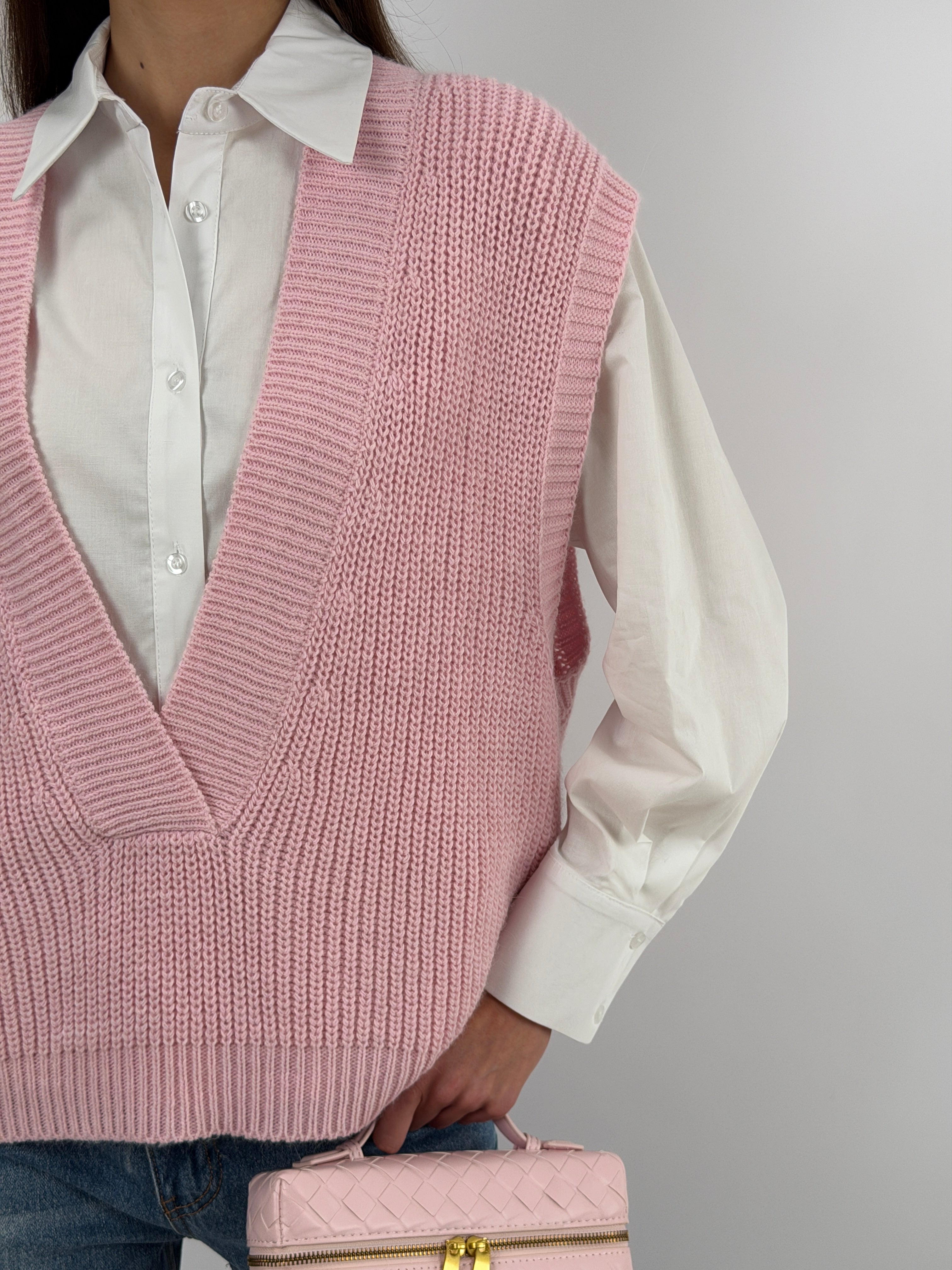 Gilet smanicato rosa oversize in maglia a coste con scollo a V profondo