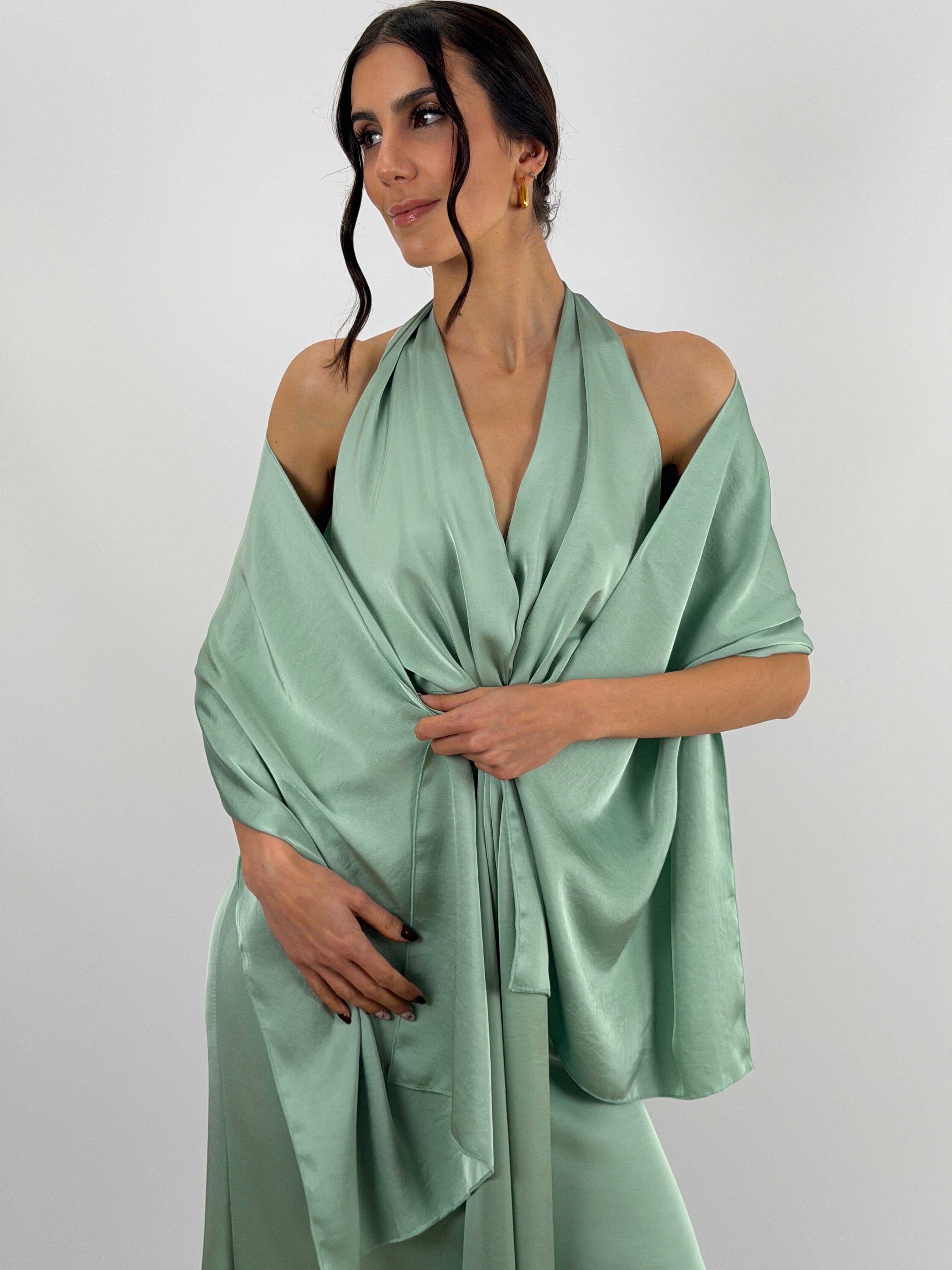 Stola in Satin Verde Salvia